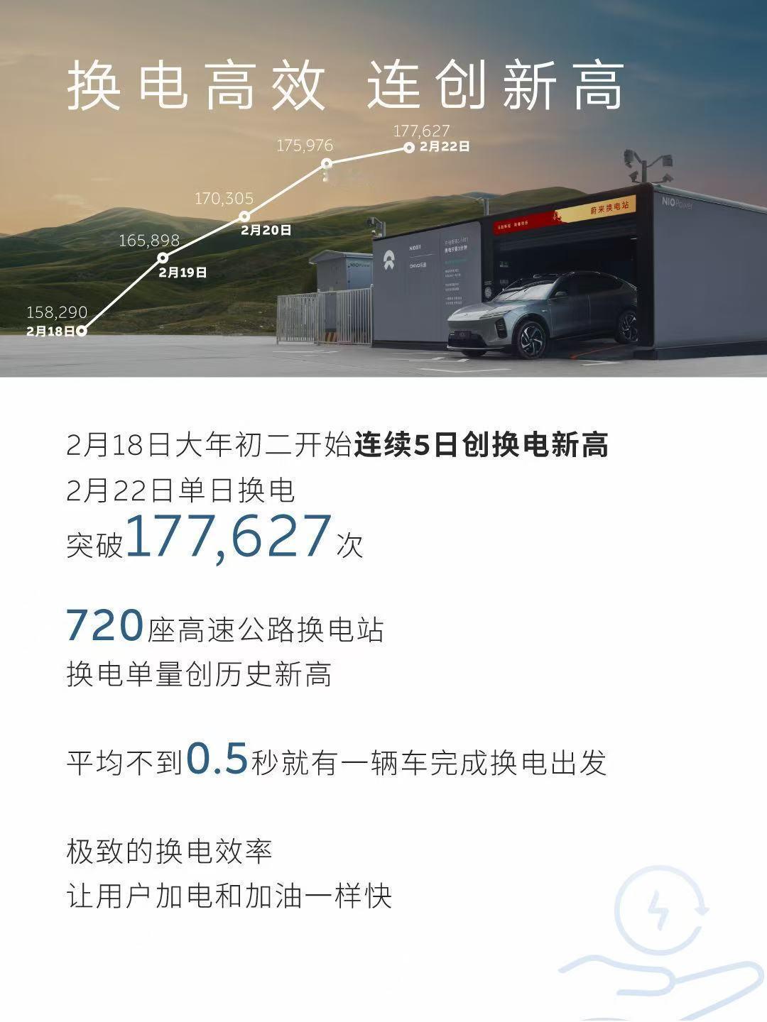 - 初六是整个网络累计最高,单日换电 177627 次。返程集中,这个符合预期。- 有 3981 位用户累计行驶超 5000 km,这个还是挺牛的。你就往返算 3000 km,假期出去玩啥的也要开掉 2000 km,这么多人这么能开吗。