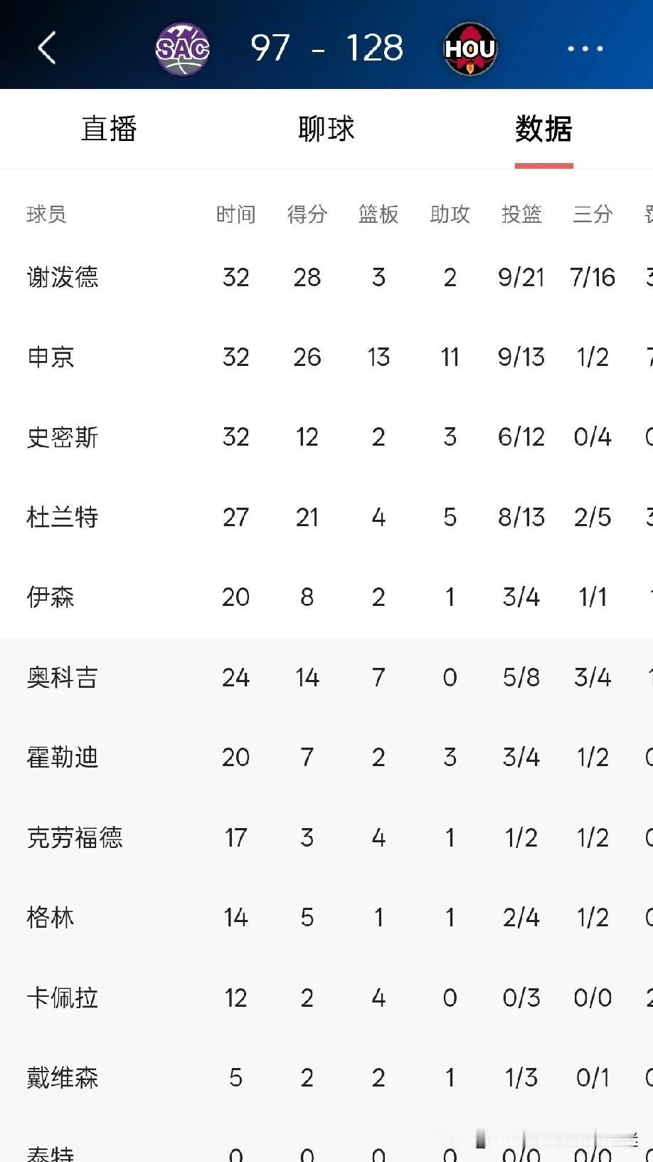 恭喜火箭以128:97拿下国王,本场比赛缺少阿门汤普森后感觉没什么变化,就是谢波德比前几场比赛更准了一些。目前看火箭比赛就是没有了防守,单干就行了。估计本赛季进入季后赛就是一轮游水准。