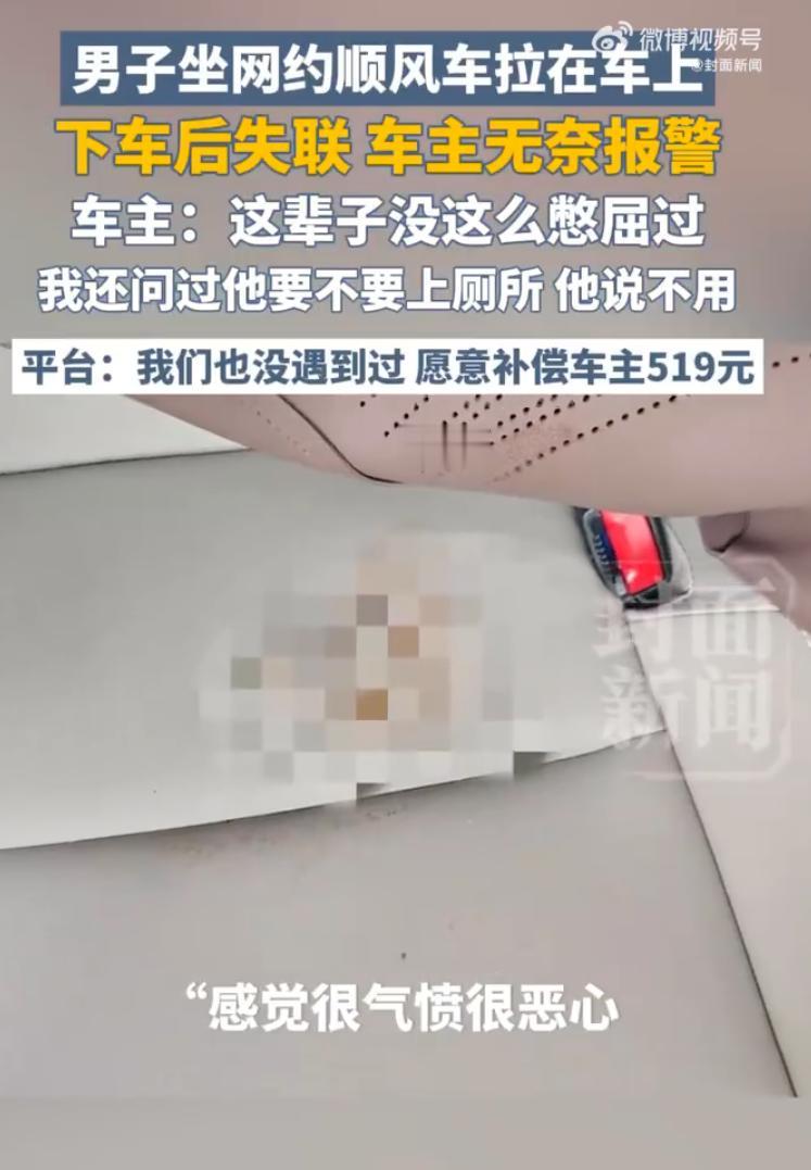 真够恶心的!从江苏徐州到苏州的高速上,一位顺风车车主侯先生,本来想着回程路上捎个人挣点油钱,没成想乘客在他的车上留下粪便,还玩起了失联。网友称:这太让人恶心了! 车主侯先生开工返程,从山东自驾回上海,路上通过平台接了两单顺路单。其中一单是个四十多岁的男乘客,从徐州上车要到苏州去。刚好赶上春节期间大堵车,原本几小时的路程,硬生生在高速上挪了11个小时,最后这一单到手也就216.3元。 更让人无语的是,侯先生一路上怕乘客憋着,特意在进服务区的时候问他要不要下车解决一下内急,结果对方摆摆手说不用。没成想,等这名男乘客到站下车走人后,侯先生回头一看差点当场吐出来:后排座套上全是粪便。这下座套彻底废了,整个内饰都得做精洗除味。 侯先生赶紧给对方打电话,结果人家不仅拒接,甚至在报警之后,依然硬气地拒绝出面,更别提什么调解赔偿了。 有网友隔着屏幕都说闻到味儿了,觉得这种人就该直接走法律程序,一天300元的误工费加上诉讼费、清洗费,必须让他长长记性。 好在后来平台还算给力,不仅限制了那个乘客的发单资质,还给侯先生补偿了坐垫和洗车费共计519元。 不得不说,这种刚复工就碰上的恶心事儿,搁谁心里都不是个好寓意。 往简单了说,网约车这种服务行业是真的不好干。平时不一定哪天就遇到让人头大的主儿,有酒后失态直接吐在车里的,有拿重物把内饰划伤的,甚至还有擦一身浓香水把车内空气都搞得没法呼吸的,干这行确实挺不容易。 说到底,人有三急谁都能理解,真要是憋不住了,大大方方承认了,该赔偿赔偿、该道歉道歉,没什么大不了的。这种拉完就跑、拒不负责的逃避做法,才是真的丢了做人的底线。