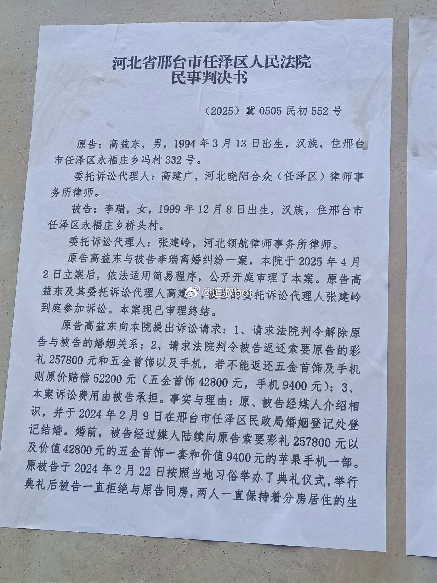 女子婚后拒不履行夫妻义务,男方持法院判决书上门索要32万彩礼引发围观!