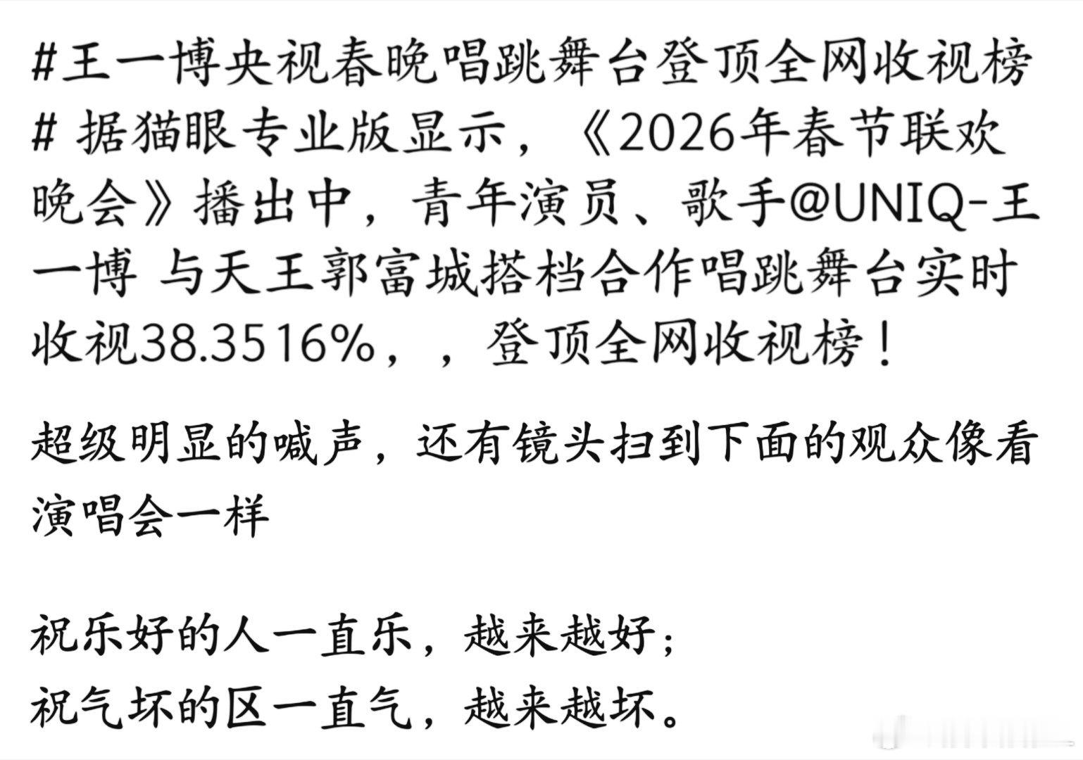 谁能想到,买个东西都能被王一博的春晚热度刷屏?大叔一句“跳舞的那个最好看”,瞬间让人DNA动了!这已经是他连续两年让春晚观众集体欢呼了,现场应援声大到震惊网友:“原来春晚观众真的会欢呼!”搭配38.3516%的恐怖收视,只能说:巨星正当红,红上加红势不可挡!