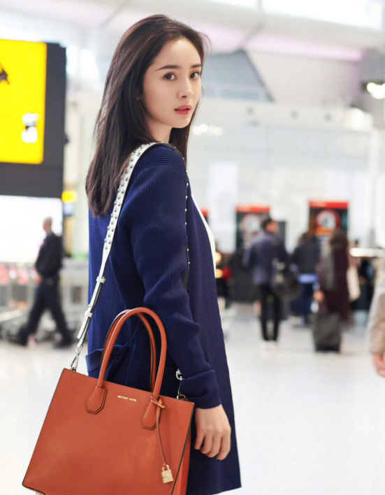 杨幂机场藏蓝开衫穿搭 轻盈舒适,素颜感清纯真实美到心坎