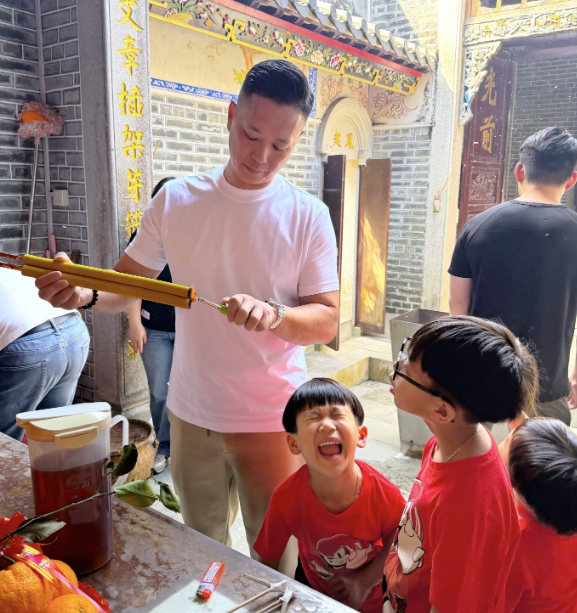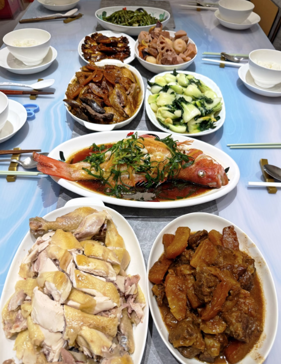 胡杏儿晒出的广版真的太正宗了 特别是最前面这盘白切鸡,标准的粤菜,而且有鸡有鱼有猪之外桌子上一定会有一盘青菜,如果再加一碗汤就更完美了 明星过年也很普通,胡杏儿穿着简单的短袖挑着扁担和萝去祭祖,完美诠释了广东人的仪式