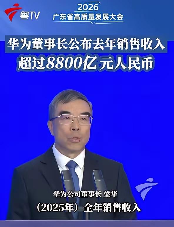 要不怎么说库克和李在镕想破脑袋也想不明白,华为居然用这种方式赢了!光看营收,苹果和三星确实可以开香槟庆祝,但他们恐怕高兴得太早了。 2月24日,马年开工的第一天,华为董事长梁华在广东省高质量发展大会上,云淡风轻地公布了2025年的成绩单。 全年销售收入突破8800亿元人民币。 五年前营收里包括荣耀,超能聚变,华为海洋。现在这部分卖掉了,营收扣除了。华为手机没有安卓生态,海外市场基本上没了。通讯设备在发达国家因地缘政治也没有,对于华为来说这些年太难了。能有今天这样的成绩,是全国人民群众的大力支持和国内产业链的崛起,帮助华为取得的。是伟大的祖国背后的支持。 华为的确太伟大,顶住了美国的打压,扶持了很多家优秀的国产供应链企业,在如此艰难的环境下取得不错的成绩,还一边高投入不断搞研发,还有什么理由不支持。是华为的硬刚,让每一个中国企业看到了希望,带动企业枝术研发创新才是企业的核心竞争力