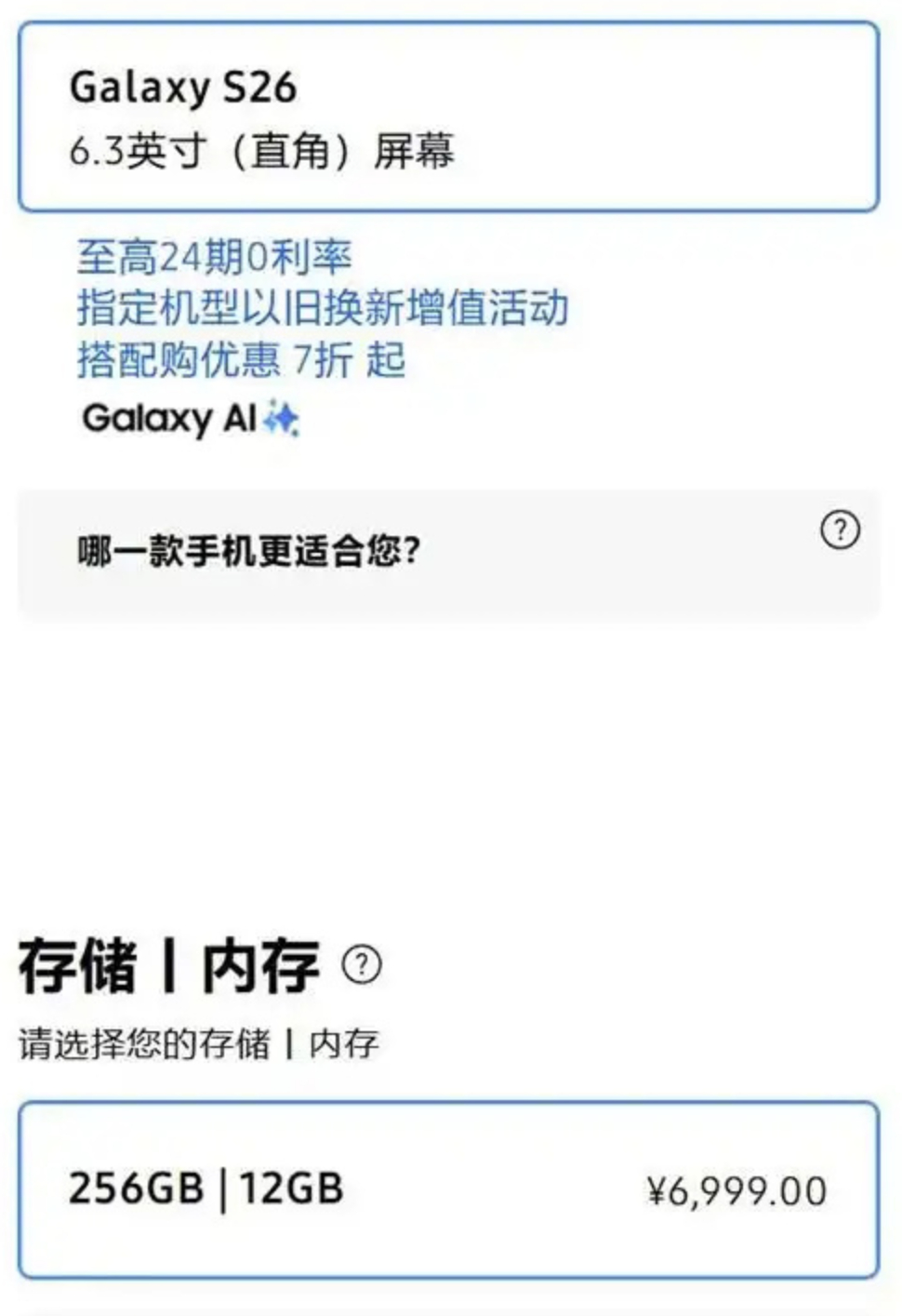 三星GalaxyS26系列价格来了!S2612+256 6999