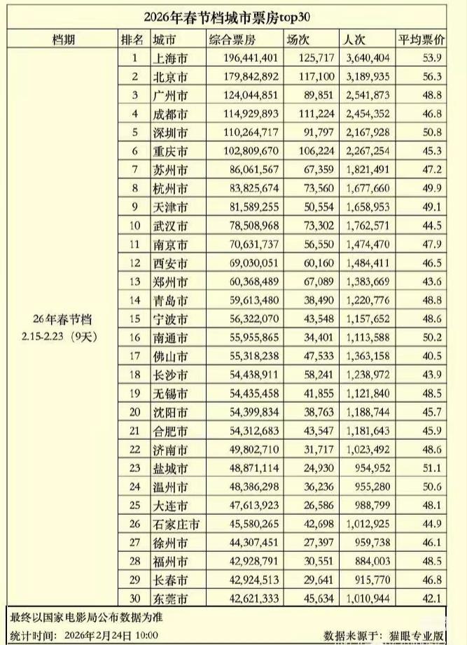 今年春节档电影没有什么爆款,感觉各城市平均票价都便宜了一点,普遍都是四五十元。现在想二三十元看一场电影是很难的了,除非小县城的那种小厅。在现在全民短视频的时代,感觉电影行业真的不太好过,一年不如一年了。