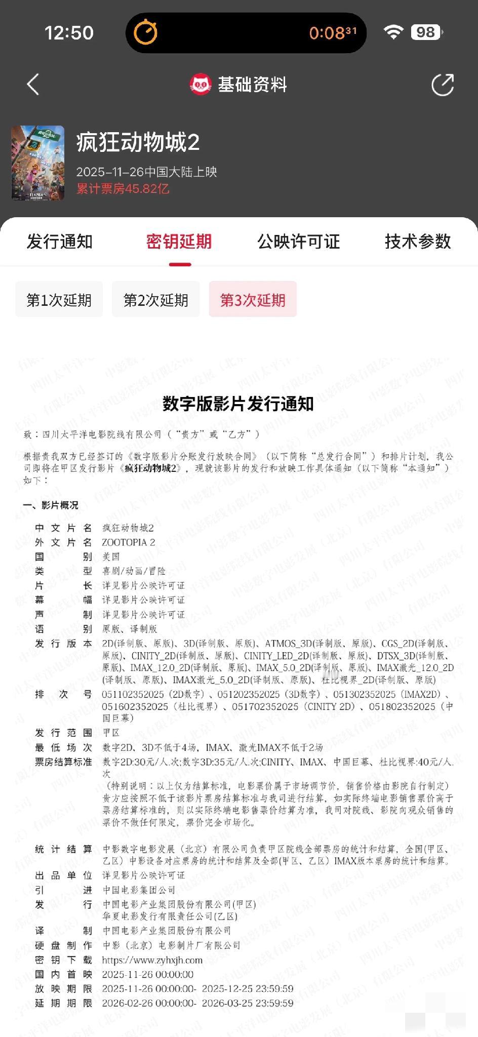 《疯狂动物城 2》北美票房登顶,内地三次延期 中国内地密钥第三次延期,延期至26.3.25 《疯狂动物城2》全球累计18.5亿美元。 北美第13周末再收230万美元,比上周未只跌39.5%,击败《星际宝贝史迪奇》以及《我的世界大电影》,登顶 2025年北美票房榜,北美累计4.24亿美元。 北美落点预计4.28亿美元上下。说《疯狂动物城2》只有中国内地火爆的根本不成立。 海外市场再收740万美元,只跌36.8%。海外累计14.3亿美元,其中中国内地6.564亿美元。全球累计18.5亿美元,全球落点预计19-19.5亿美元之间。制作成本1.5亿美元。