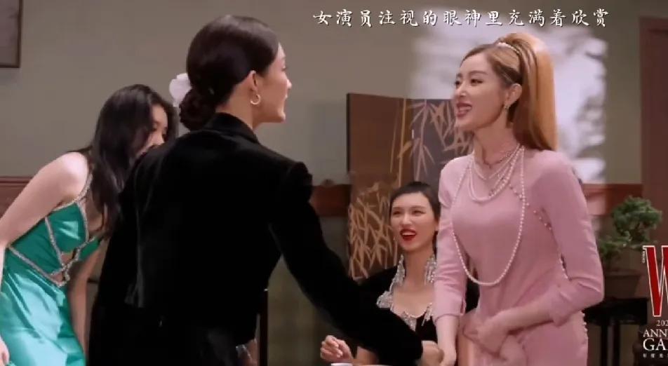 刘浩存的咖位不低啊,可是她真是骨子里的谦逊礼貌,张天爱进来和好友李沁打招呼,只有刘浩存也跟着站起来迎接,站在一旁看着两个姐姐寒暄,其他人则坐在椅子上动也不动。