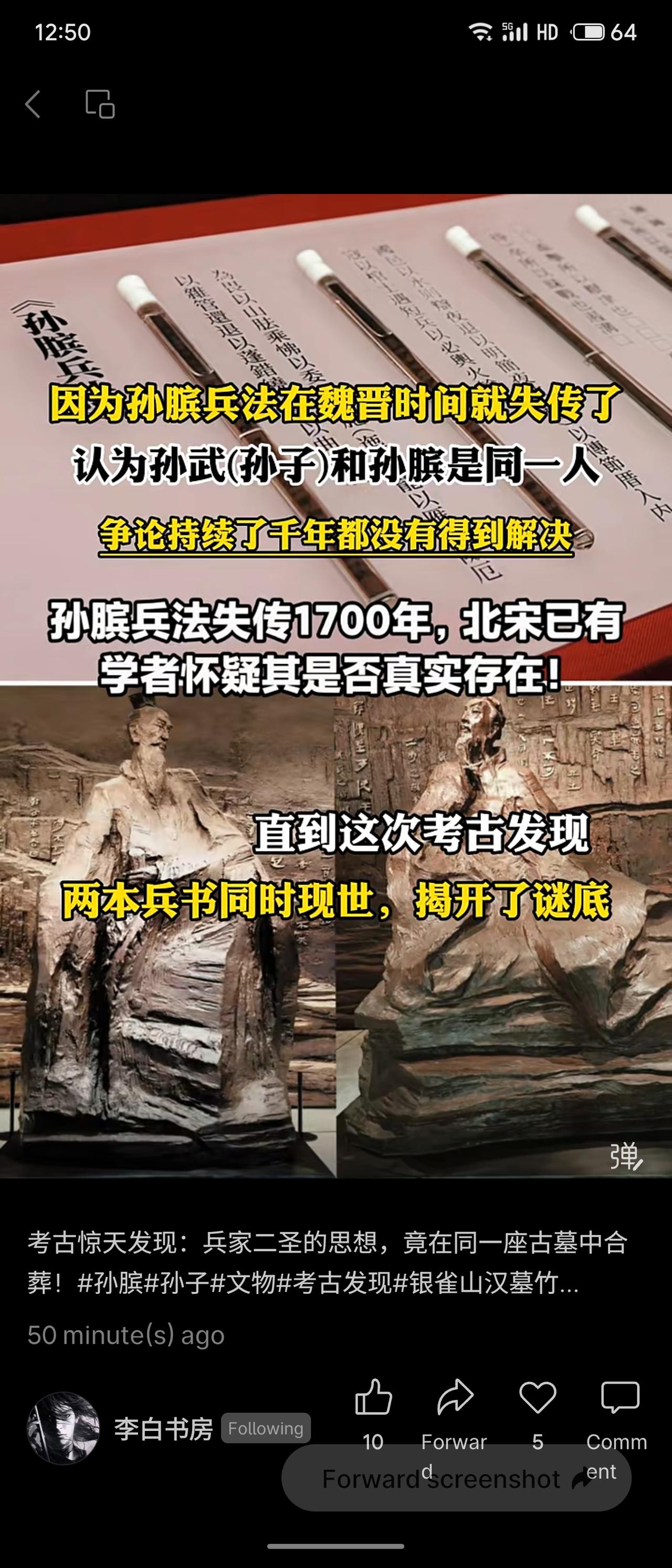 1972年山东银雀山汉墓出土《孙子兵法》与失传千年的《孙膑兵法》,证实孙武、孙膑各有兵书传世,终结了千年来“二人是否同一人”的学术争议。 这一发现是考古学与文献互证的典范,为古代兵学思想研究提供了确凿物证。