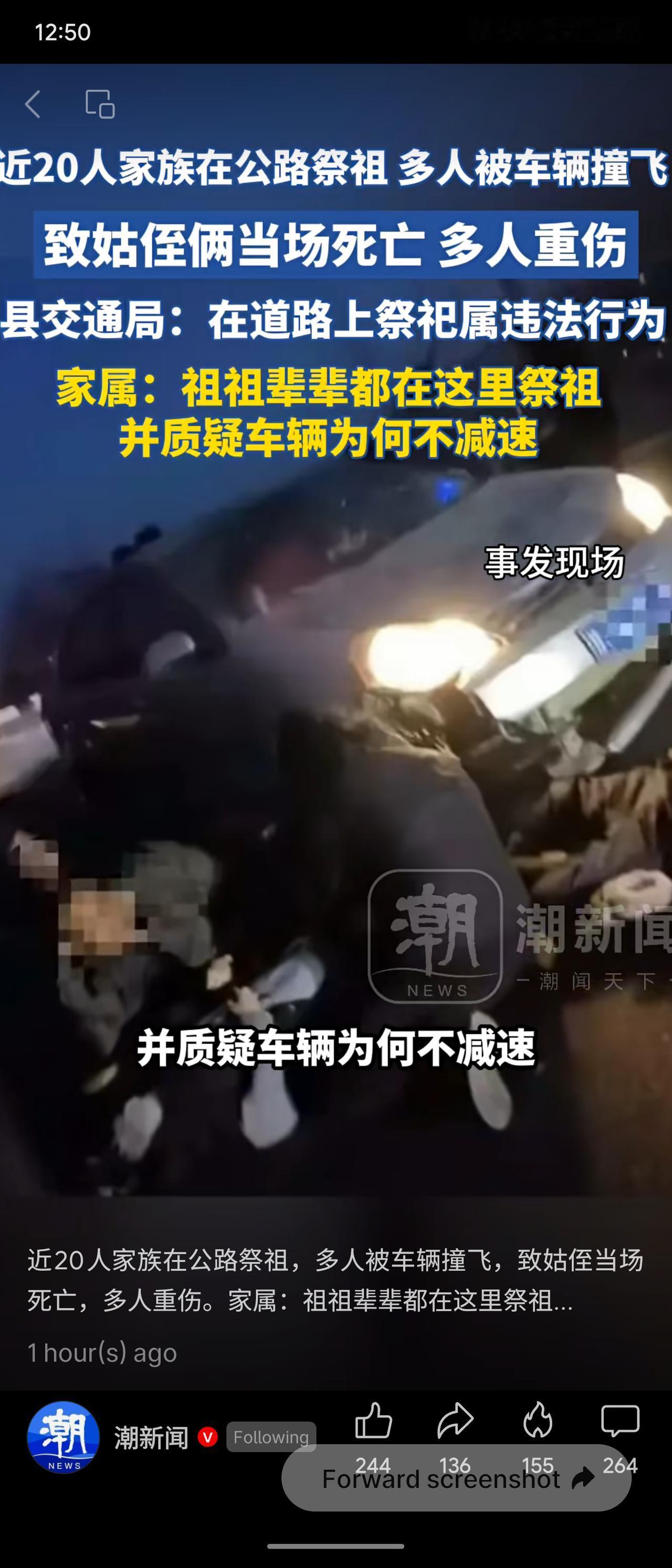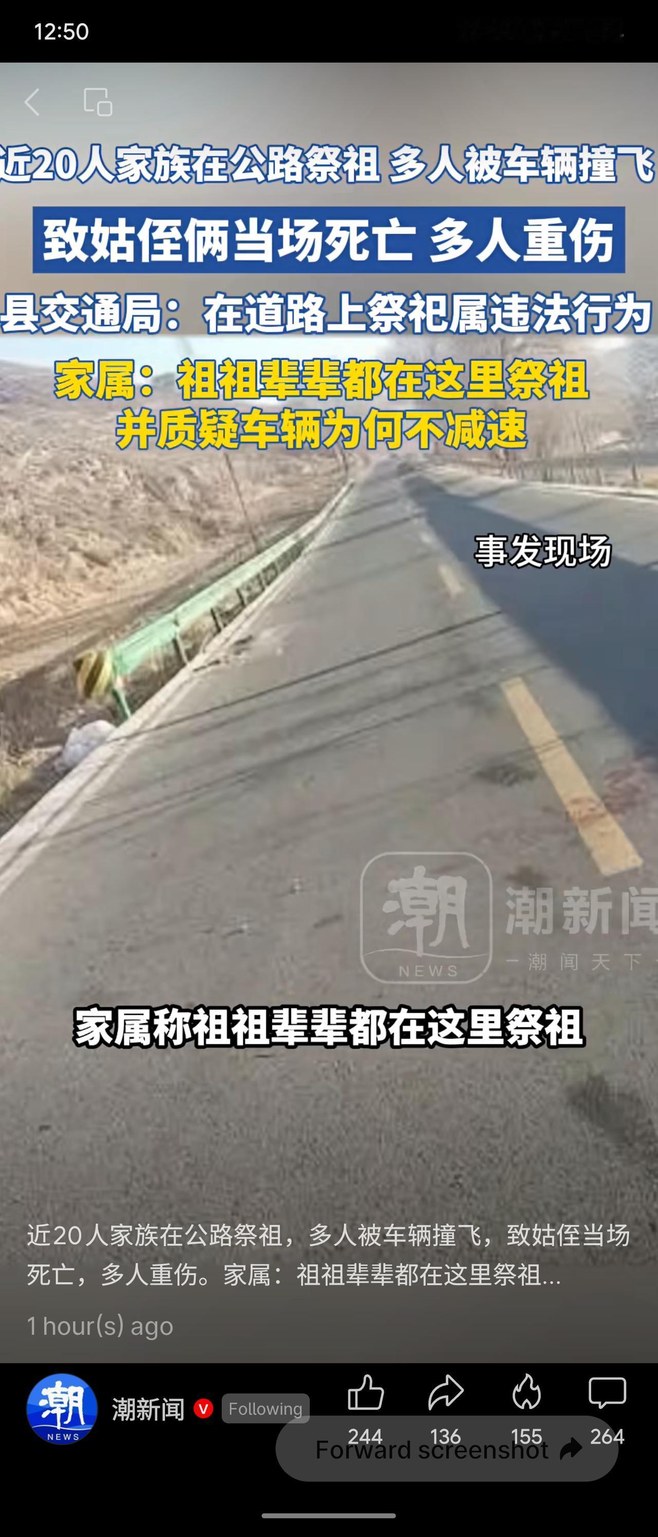 家族近20人在公路祭祖时被撞,致两姑侄当场死亡、多人重伤。家属称祖辈传统,质疑车辆未减速;县交通局认定道路祭祀违法。传统习俗与公共安全的冲突,再敲警钟。