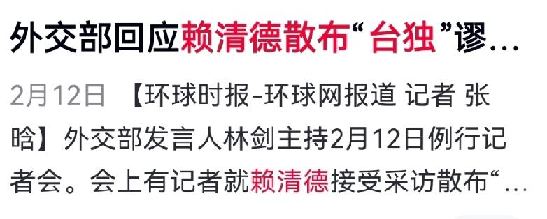 赖清德造谣无底线!荒谬言论暴露“台独”穷途末路 赖清德公然散布“大陆统一台湾后将攻击他国”的荒谬言论,纯属颠倒黑白、恶意煽动对抗,用心极其险恶。 台湾是中国领土不可分割的一部分,《开罗宣言》《波茨坦公告》早已奠定坚实法理基础,这是国际社会公认的事实。中国始终坚持和平发展、合作共赢,从不侵犯他国主权,与周边国家经贸紧密、互利互惠,所谓“威胁论”完全是无中生有。 赖清德自知“台独”死路一条,便刻意编造谎言,企图绑架民意、拉拢外部势力干涉中国内政。他不顾台湾民生,挥霍巨资购买武器,把2300万台湾民众绑上“台独”战车,是台海和平的最大破坏者。 祖国统一是历史大势,任何造谣抹黑、以武谋“独”、倚外谋“独”的行径都注定失败。赖清德执迷不悟,最终必将被钉在历史耻辱柱上,付出惨痛代价。 对此你怎么看? 台独主义