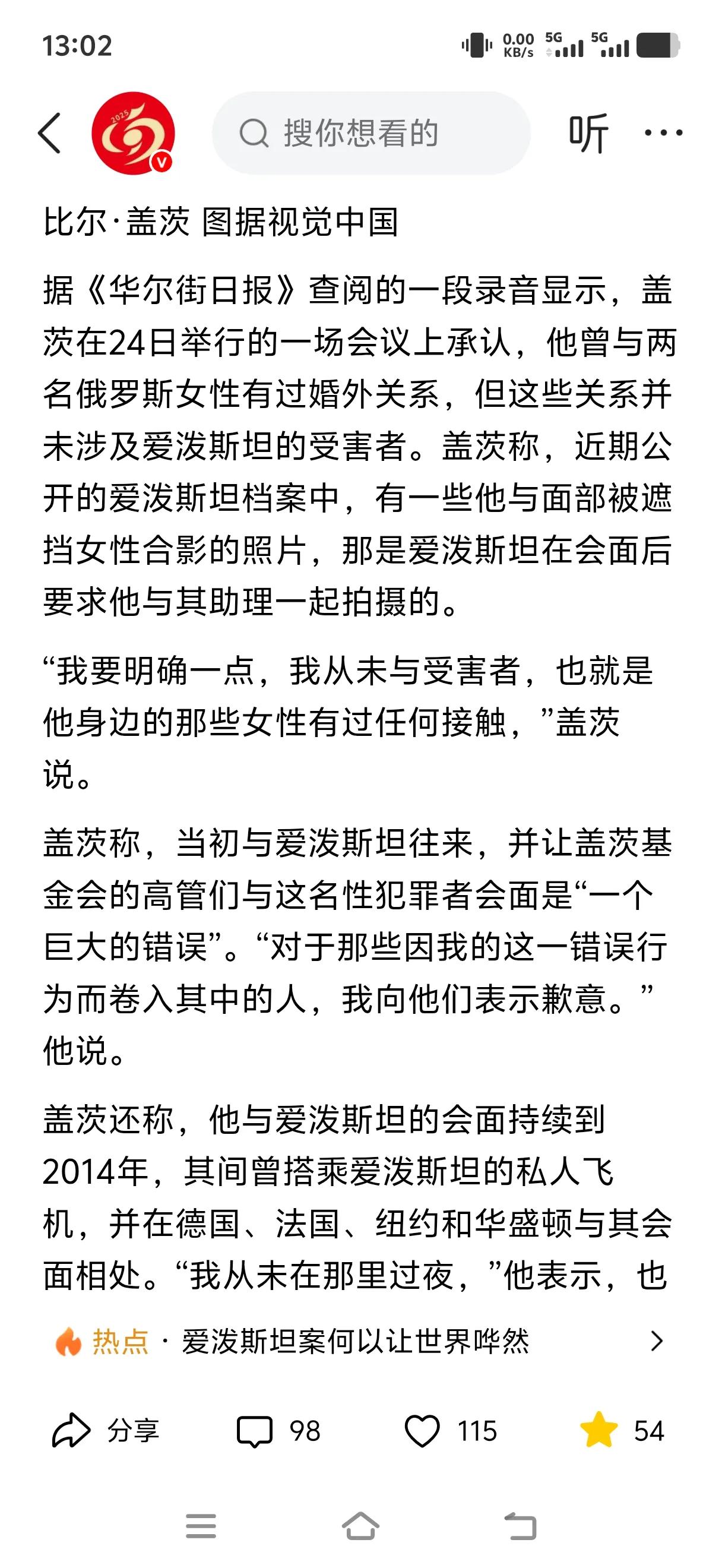 比尔盖茨再次道歉,他承认了。 他承认的是他自己曾经做过的,他没做过的,他坚决不承认。 他说他自己在婚内与两名俄罗斯女性有过婚外关系,但他从来没有涉及过萝莉岛。 他说他从未与任何一名涉案的受害女性有过接触。 他很后悔与爱泼斯坦之间的6年的友谊,他每次与爱泼斯坦见面之后,其都会让自己身边的美女助理与比尔盖茨合照。 现在看到的那些打码的比尔盖茨与美女的合影就是那时留下来的。声称这是对他的诬陷。