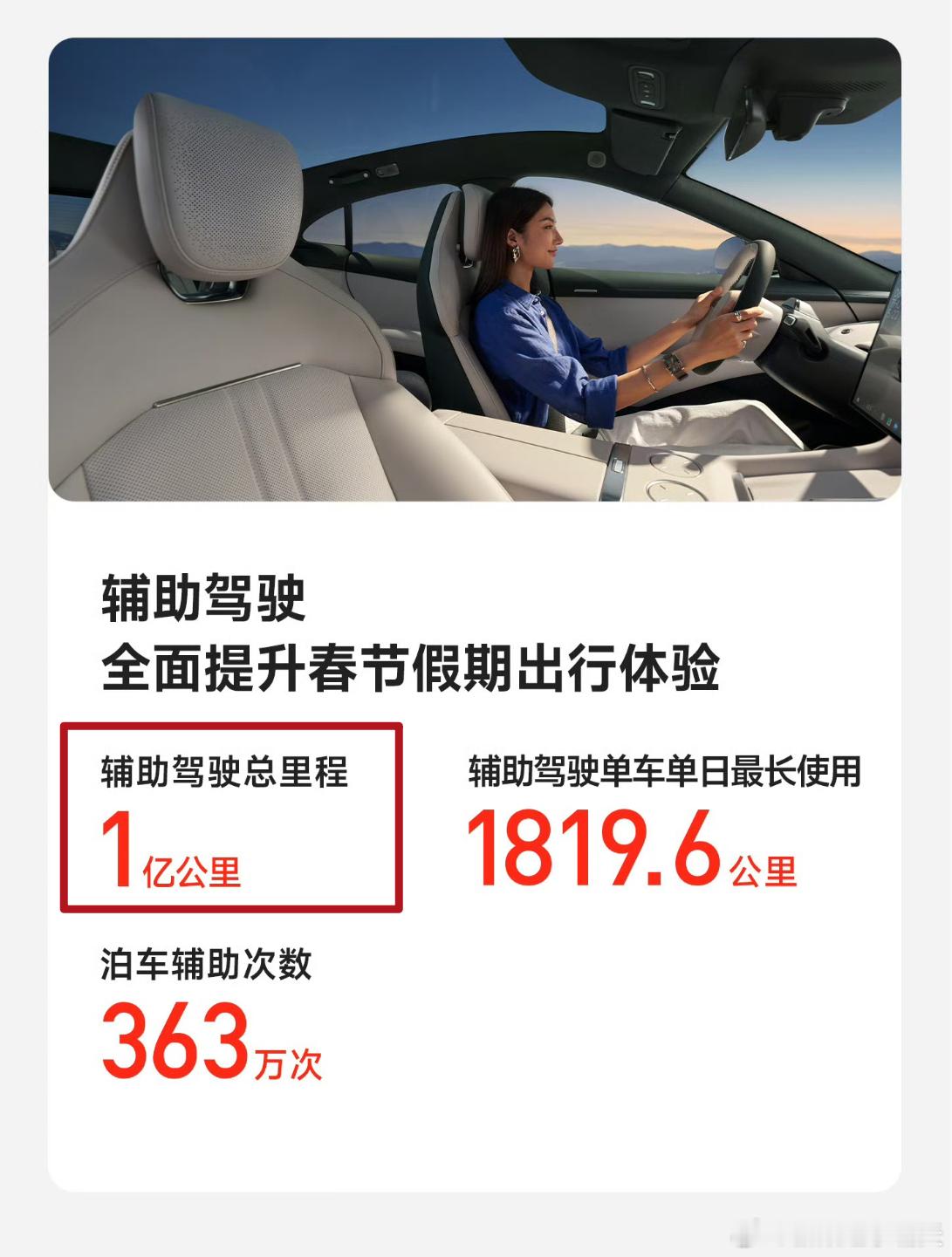 虽然没有直接放“辅助驾驶里程占比”,但是辅助驾驶总里程和行驶总里程都公布了;