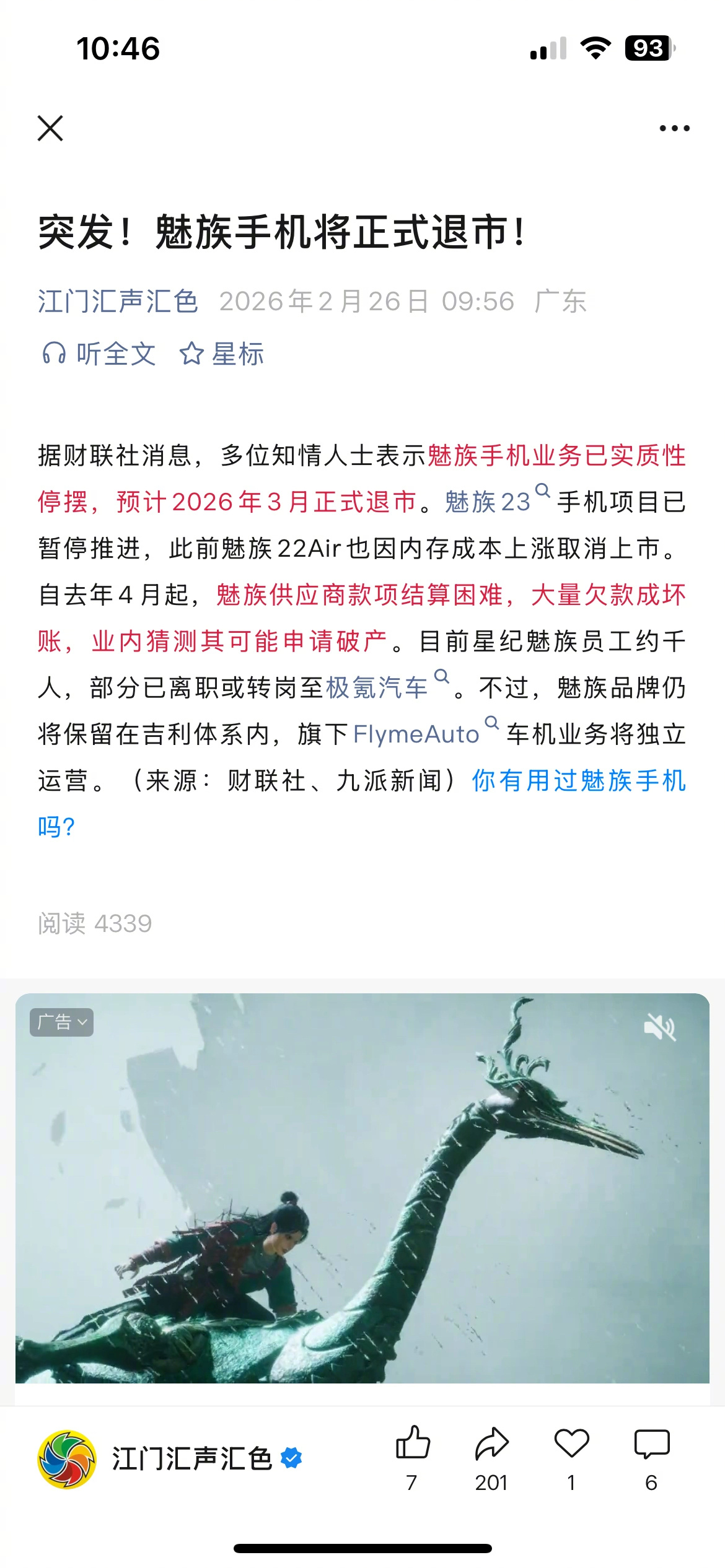 魅族手机要没了?