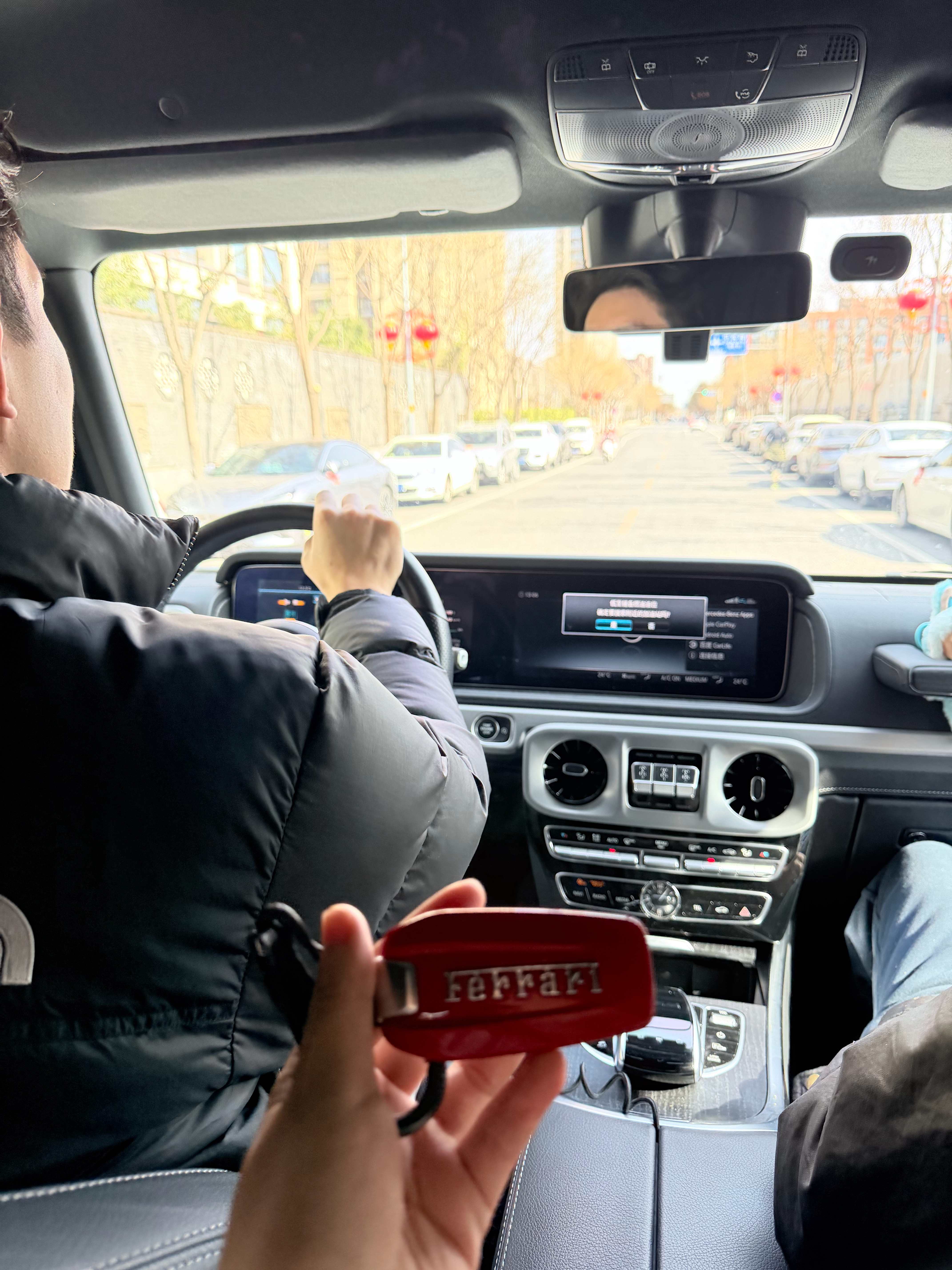 汤总拉着团伙来干饭问:图中这台是汤总的法拉利还是大G