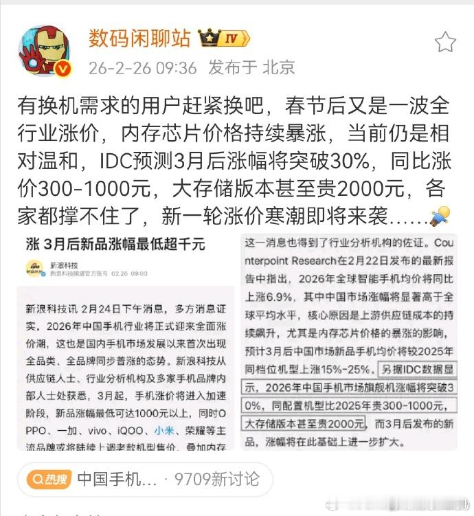 大家猜猜,这一波存储涨价之下,华为手机会不会涨价呢?