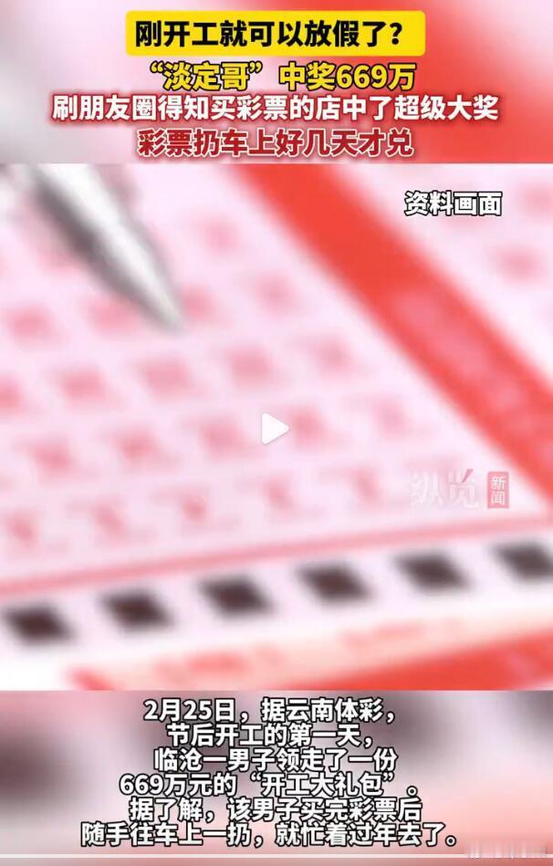 我认识几个买了好多年彩票的老鸟,天天在家里画所谓的“分析图”,想要从中找出中奖号码的规律,这样也挺好,乐在其中嘛。但是从来没中奖过,买彩票的钱不知花了多少了,从来没回本过。有一次我劝他别玩了,他还特别坚定的告诉我,继续下去总有一天能中奖的。我也只能摇摇头,不忍心继续说了,大家都知道就是个剧本嘛,摇奖现场的bug都不知道多少次了。不知道这种一夜暴富的神话,养活了多少人啊?男子中669万刷朋友圈查彩票才发现男子中669万彩票扔车上好几天才兑