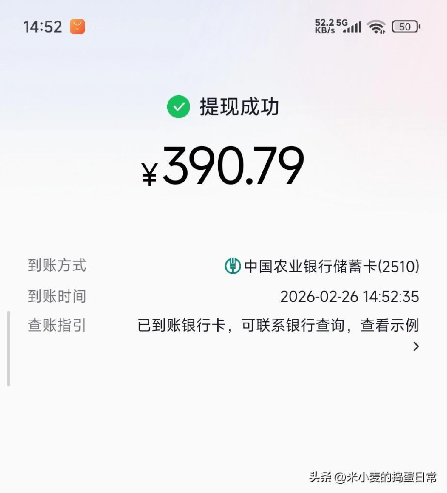头条又提现390.79元! 14万阅读只赚48块,自媒体人的真实收入有多扎心? 今天是周四,头条创作者的“法定提款日”,我终于把这周攒的390.79元提出来了。看着到账提醒,心里一半是踏实,一半是五味杂陈。 昨天14万的阅读量,只换来48块钱,比前天的68块还少。这一周的收益确实是今年最高的一次,但也清楚地知道,这不过是运气好撞上了一篇爆文。之前的周提现,大多也就百八十块,甚至更低。 别再信“单靠写作月入过万”的神话了。对我们普通人来说,自媒体就是个“看天吃饭”的兼职。收入不稳定,今天可能几百,明天可能几块钱。 所以,千万别裸辞全职干这个!有一份稳定的工作托底,把创作当爱好,反而更有激情。偶尔爆一篇,赚点零花钱补贴家用,就当是生活给的小惊喜。 你做自媒体多久了?是当主业还是副业