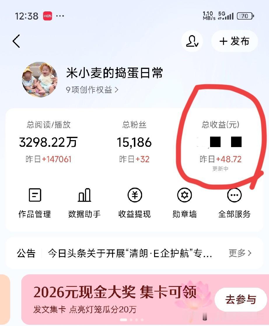 100万推荐量仅赚48元? 头条创作者的“流量泡沫”真相 昨日后台数据:作品获101.3万推荐量,阅读量14.7万,收益却只有48.72元!“这流量简直是泡沫!”“写稿写到颈椎痛,还不够一杯奶茶钱!” 细看数据更扎心:粉丝展现量2.9万,粉丝阅读仅2067,点赞669、评论353,互动率不足1%。难怪有老粉吐槽:“推荐量再高,粉丝不买账也是白搭!” 这背后,是头条算法的“流量游戏”:系统疯狂推流吸引眼球,却把广告分成压到极致。一位运营5年的自媒体人算过账:100万推荐量若按正常广告单价,至少该有300元收益,如今缩水80%,创作者成了“免费流量发电机”。 流量时代,创作者的困境何解?或许正如一位网友所说:“别再迷信推荐量,把粉丝当朋友,把内容当作品,才是破局之道。”毕竟,流量会过期,但真诚的内容永远有温度。