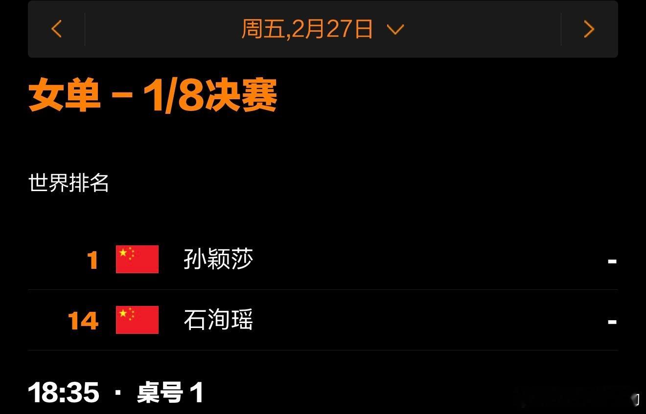WTT新加坡大满贯丨莎莎大头赛程2月26号赛程20:20 T1 王楚钦🇨🇳VS安德斯·林德🇩🇰2月27号赛程18:35 T1 孙颖莎🇨🇳VS石洵瑶🇨🇳王楚钦孙颖莎比赛加油,健康完赛