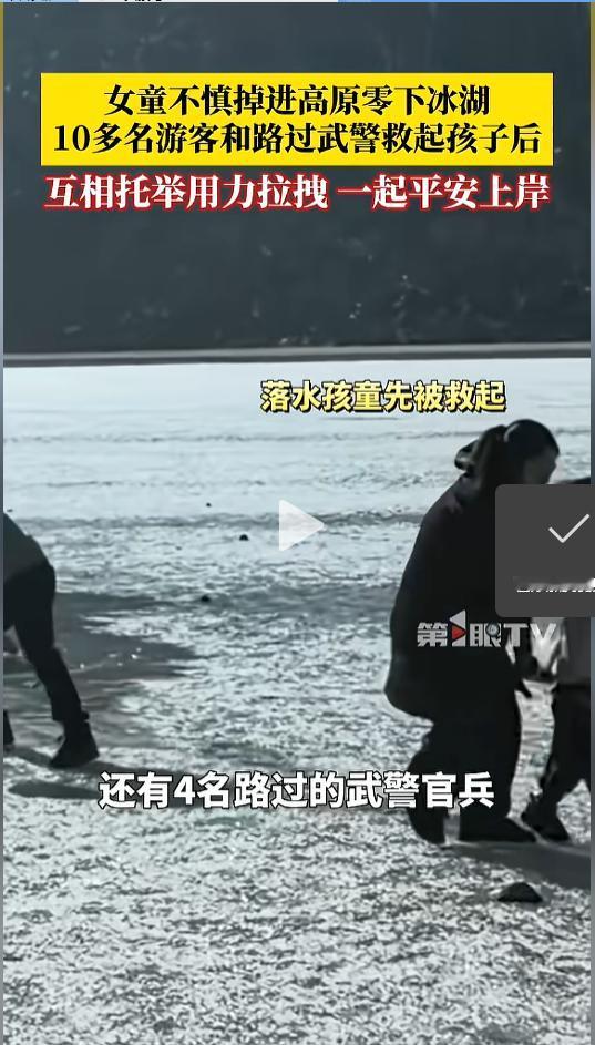 “这世上还是好人多!”近日,西藏昌都市,一个小女孩在冰面上玩耍时,不慎踩碎了薄冰,掉入水中。岸边的游客见状,赶紧下去救援,可由于冰面实在太薄,几个人自己也滑了进去。这时,又有一些人下来帮忙。网友:每个人都是英雄! 春天到了,气温逐渐回暖,高原上一些厚厚的冰层也开始融化,冰面上玩耍时一定得提前查看,注意安全。 据媒体2月25日报道,事发当日,小女孩正在然乌湖的冰面上玩耍,不小心踩碎了薄冰,掉进了湖水中。 岸边有几个游客看见了,没有犹豫,赶紧下到了冰面上,试图把小女孩拉上来。可是小女孩周围冰面实在太薄了,支撑不住,他们几个人也滑进了水中。 这时候,岸上的其他人也过来帮忙,还有几位路过的武警官兵。水下的人也没有慌张,他们一起在水里托举着小女孩,冰面上的人也用力拖拽,终于先把小女孩救了上去。 随后,几个人相互扶持,在大家的共同努力下,所有人都平安上岸了。有目击者称,当日的气温在零下3度左右,非常的寒冷,这些人下去的却十分果决。 网友看后表示:互帮互助是中华民族的传统美德,危险时刻,他们敢于挺身而出,是我们所有人的榜样!真诚的祝福他们,好人必有好报! 信息来源:《为热血出手救人的他们点赞!女童不慎掉进高原零下冰湖,10多名游客和路过武警救起孩子后,再互相托举用力拉拽,最终所有人一起平安上岸!》第1眼新闻