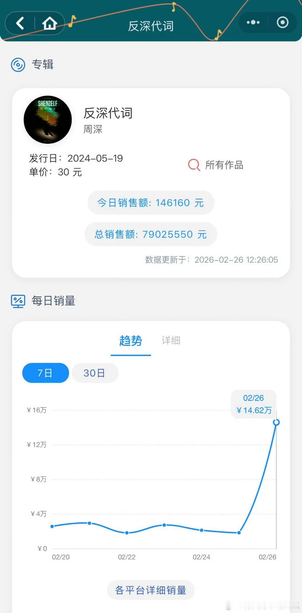 周深个人专辑《反深代词》总销售额破了7900w,是限购后内地专辑xl第一周深和孩