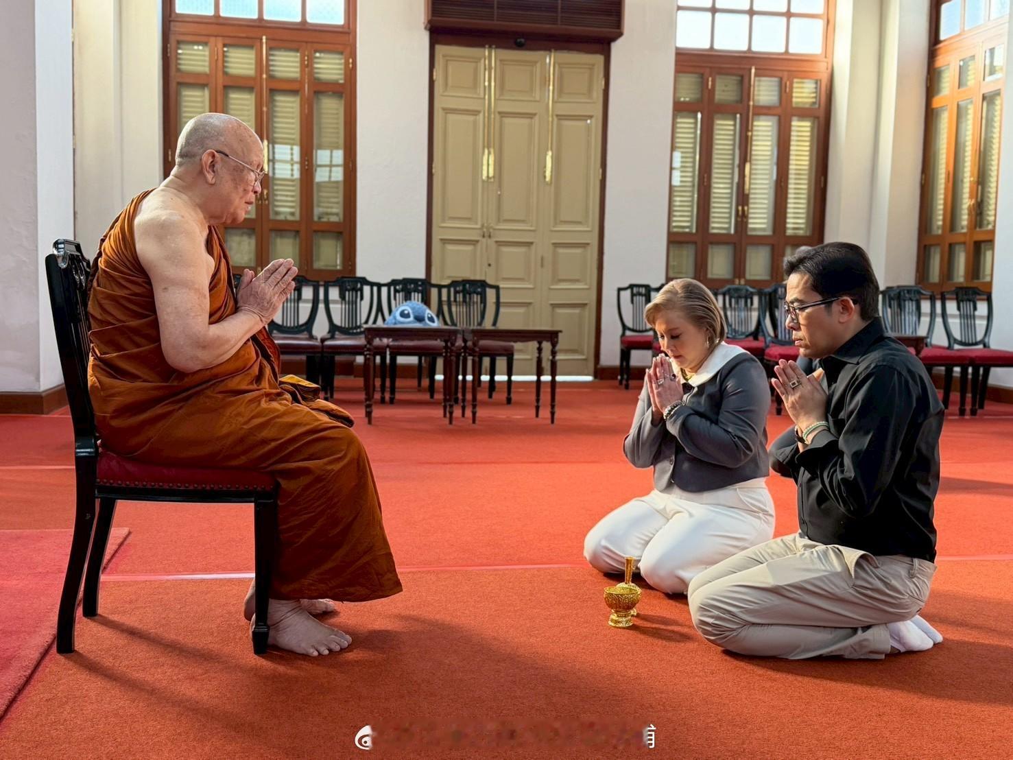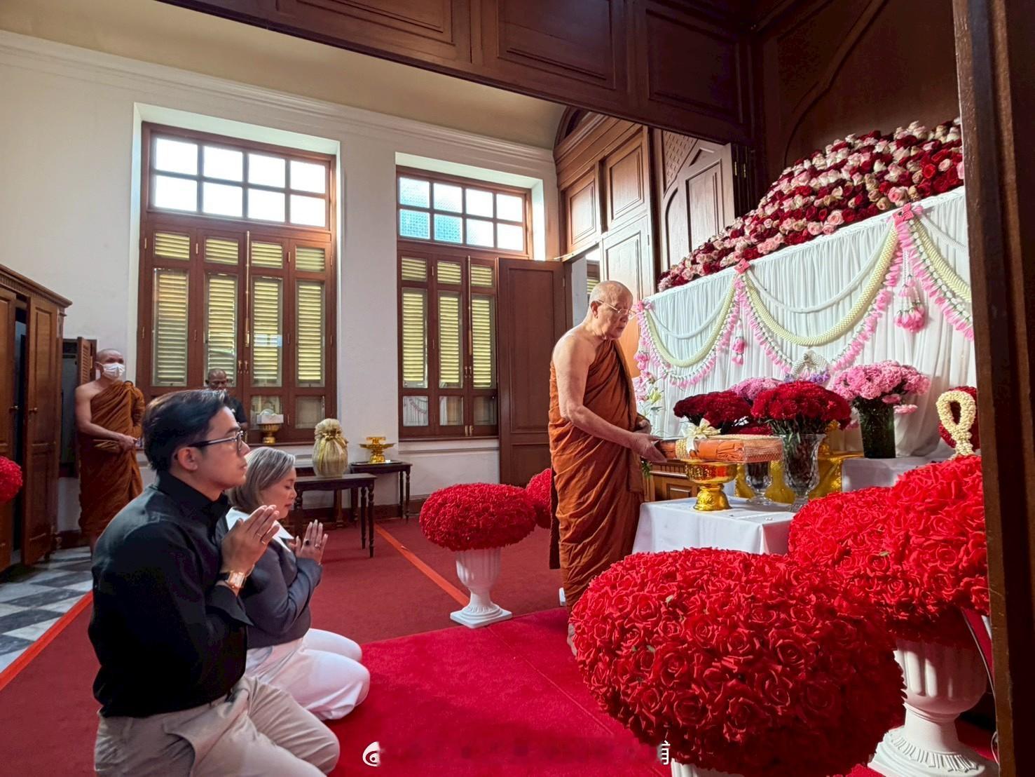 王室王室泰国王室王室旁支 2026年2月3日,莎莉夫妇在曼谷的云石寺聆听僧侣诵经,原来在潘萨瓦丽夫人的火葬前还有这最后一场法事。莎莉没有邀请别人参加,只有自己两口子到场,看有留言说夫人的裹尸布来自这里,不知道是不是有什么高僧诵经祈福加持后使用的说法。