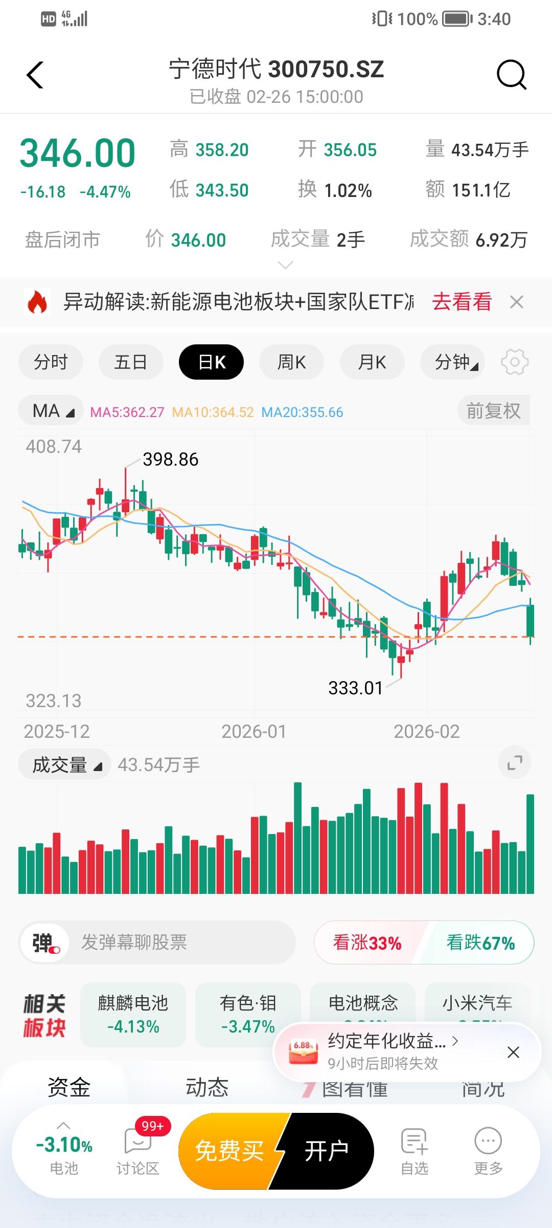 今天宁王大跌,最低跌至5%以上,有传闻说铁空气电池将要横空出世,而且性能要比锂电池要好得多,所以拖累了宁王,导致大跌。其实早几年前,说钠离子电池也比锂电池要好,但这几年也没提它了,似乎被遗忘了。再说铁空气电池应该有个硬伤,就是铁太重了,不管说什么好还是锂电池是主流,宁王之后还会补涨滴。