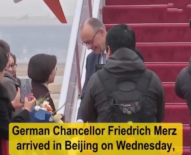 德国总理抵达访华第一站受到隆重欢迎!2月25日,德国总理默茨开启对中国的正式访问,走在机场的红毯上,一位警察紧跟其后,应该是中方安排的贴身保镖,看起来好飒。 默茨当天穿着一身深色西装,神情略显拘谨,毕竟这是他第一次以德国总理的身份正式访华,面对如此隆重的欢迎仪式,难免会有些紧张,一举一动都格外谨慎,生怕出现半点差错。 他在机场停留的时间并不长,简单接受欢迎仪式后,就乘车离开,直奔第一个活动现场,明眼人都能看出来,默茨这次访华,不是来旅游的,而是带着实实在在的任务,每一分每一秒都不敢浪费。 很多人可能不知道,默茨这次访华,行程安排得格外紧凑,总共只有两天时间,其中在北京只停留一天,26日就要马不停蹄赶往杭州,光是赶路就要花费不少时间,可见这次访华的重要性。 这次访华,默茨的行程安排得满满当当,除了和中方举行正式会谈,商讨中德合作的相关事宜,还会前往故宫参观,感受中国的传统文化,另外还要走访在华德企,了解德国企业在中国的发展现状。 之所以安排这么紧凑的行程,核心还是因为中德两国的合作太重要了。德国是欧洲的经济大国,中国是全球最大的市场之一,两国在贸易、科技、制造业等多个领域,都有很深的合作基础。 2025年,中德双边贸易额达到了1.5万亿元人民币,德国很多知名企业都在中国布局,比如大众、宝马、西门子等,这些企业不仅给中国带来了先进的技术和就业岗位,也让德国企业获得了丰厚的收益。 默茨这次访华,最核心的目的就是巩固中德双边关系,深化两国在各领域的合作,尤其是在新能源、汽车、智能制造等领域,希望能达成更多合作共识,实现互利共赢。 其实默茨上台以来,一直很重视中德关系,之前就多次在公开场合表示,中国是德国重要的合作伙伴,希望能加强两国之间的交流与合作,这次亲自访华,就是最好的体现。 现场不少网友拍下了接机的画面,视频传到网上后,瞬间引发热议,有人感慨,中德友好相处,对两国老百姓都是好事,也有人表示,看到兵哥哥护航的画面,莫名觉得安心,这就是中国的实力。 还有网友调侃,默茨的紧张感都写在脸上了,毕竟第一次正式访华,面对这么隆重的场面,换谁都会有点拘谨,不过也能看出,他对这次访华非常重视,全程都很认真。 可能有人会问,默茨为什么非要亲自访华,还安排这么紧凑的行程?说白了,就是现在全球经济形势复杂,德国自身的经济也面临不少压力,需要和中国加强合作,寻找新的发展机遇。 这些年,中德两国一直保持着良好的合作关系,不管是贸易往来,还是文化交流,都十分频繁,中国给德国企业提供了广阔的市场空间,德国也给中国带来了先进的技术和经验,双方互补性很强。 默茨参观故宫,不仅是感受中国传统文化,也是希望通过这种方式,增进中德两国人民之间的了解和友谊,为两国合作奠定更好的基础,毕竟国家之间的合作,离不开人民之间的相互认同。 默茨这次访华,不仅是一次简单的外交访问,更是中德两国深化合作、增进友谊的重要契机,国家与国家之间,只有加强交流、真诚合作,才能实现互利共赢,才能共同应对全球面临的各种挑战。 中德两国作为世界上重要的经济体,双方的合作不仅关系到两国人民的利益,也会对全球经济发展产生重要影响。希望这次默茨访华能收获满满,推动中德合作再上新台阶。 国家之间的友好相处,从来都是相互的,中国一直秉持着平等互利、真诚相待的原则,和世界各国展开合作,相信未来会有更多国家像德国一样,主动与中国加强交流,共同走向繁荣。 大家对此有什么看法呢?欢迎各位在评论区留言!