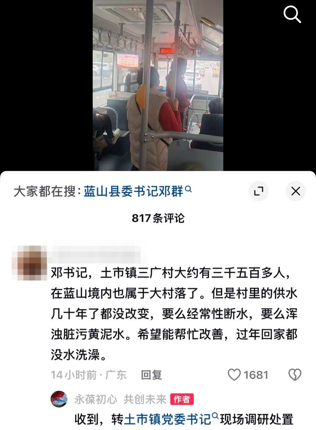 【#官方回应县委书记回复网友留言#】#湖南一县委书记评论区成留言板# 近日,湖南永州市蓝山县委书记邓群通过抖音平台,对当地群众反映的几件民生问题快速作出答复并转办。邓群的留言风格亲民,当地部分群众表示,其反映的事项在第二天就得到了解决。