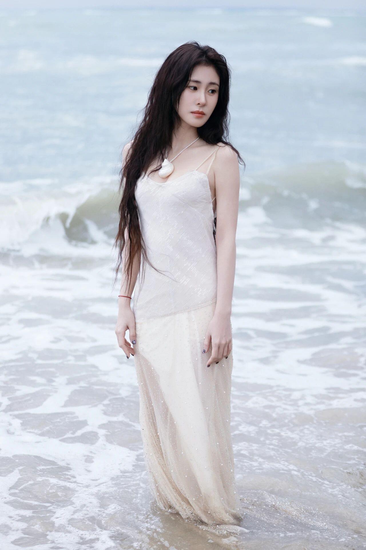 张碧晨 《海的低语》 风把你的发梢 卷成浪的形状 你低头,把心事 藏进贝壳项链的纹路里 白裙沾着海盐的气息 指尖掠过泡沫的微凉 每一步都踩碎 海与岸的边界 你望向远方 像在等一艘未归的船 而我看见 你的眼睛里 盛着整片蔚蓝的沉默 。。。。。。。。。。。。。。。