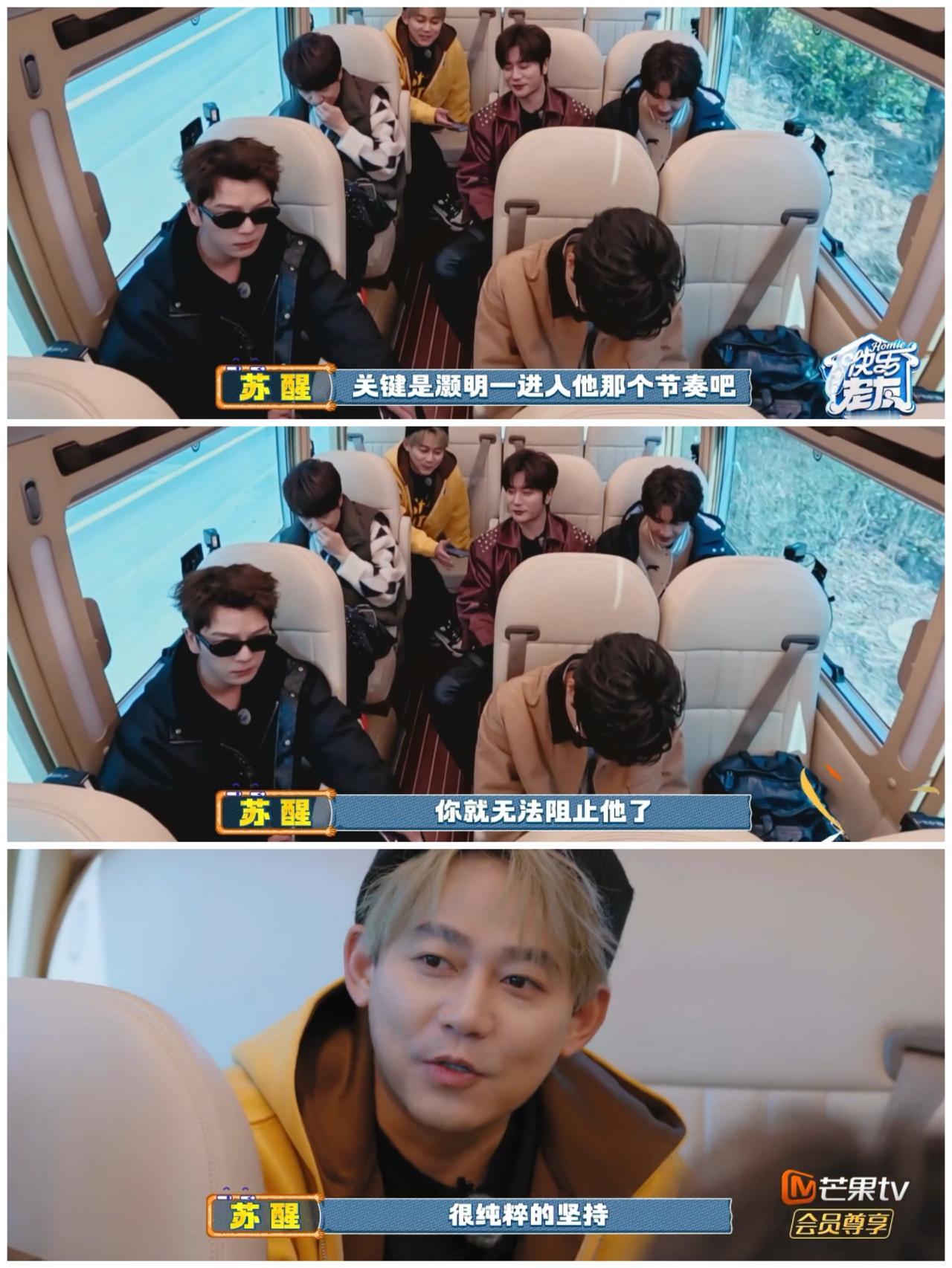 俞灏明这番操作, 让厨师师傅哭笑不得, 苏醒却力挺。 俞灏明好不容易跟剧组请假, 跟陈楚生他们在丽江过春节, 结果带来的不是惊喜 而是惊吓。 陈楚生等5人都没有逃过 俞灏明一顿黑暗料理的祸害。 其中受伤害最深却是他。 他就是吴厨。 俞灏明制作黑暗料理的厨具漏网 是吴厨带来的, 被俞灏明烧穿了, 无法再使用了。 俞灏明邀请他品尝出品, 吴厨果断拒绝。 在别人看来俞灏明这个黑暗料理, 是那种固执的坚持, 让人无法理解。 但是苏醒有不一样的看法。 强调俞灏明如果进入一种状态, 就有一种很纯粹的坚持。 俞灏明有那么千奇百怪的想法, 就立马去实现, 漠视身边的人 评价, 做自己想做的事情就好。 这种人真的比较难以内耗, 就活在自己的世界里, 有一种大隐于市的感觉。