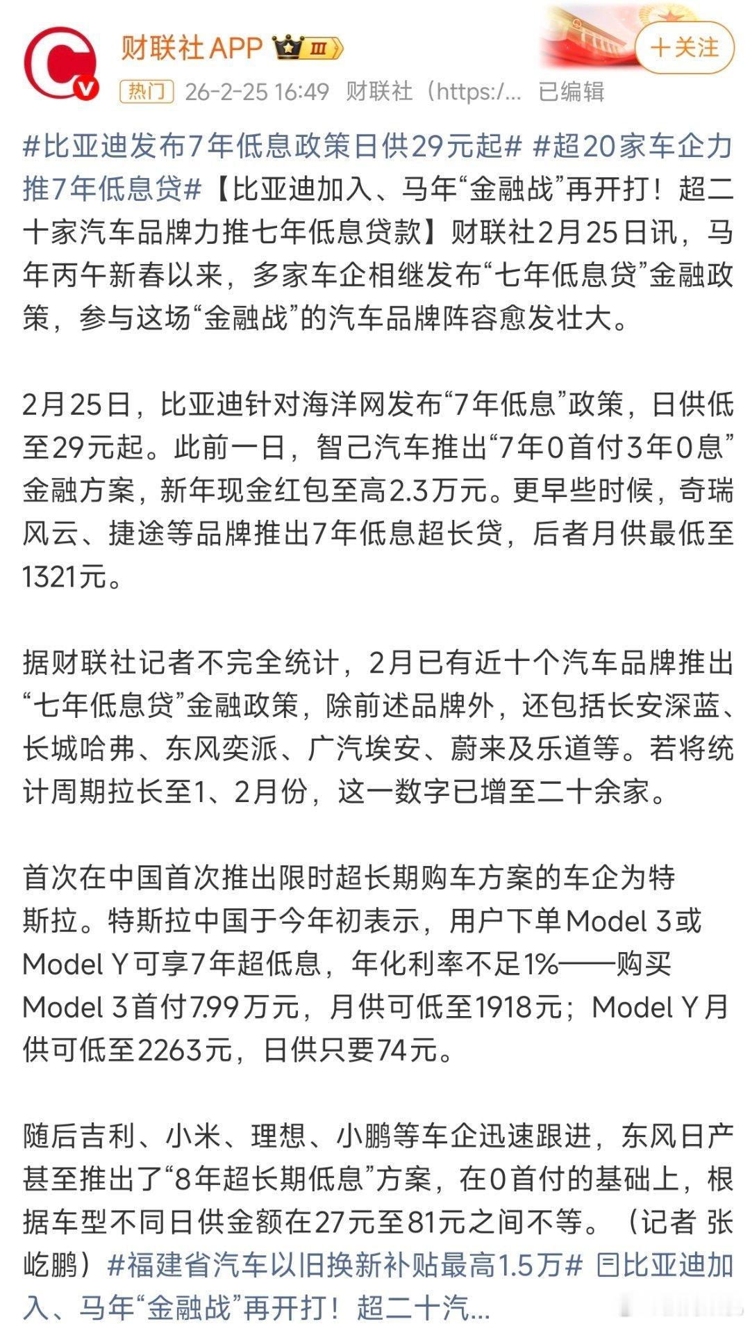 比亚迪也跟进了七年低息的超长贷。