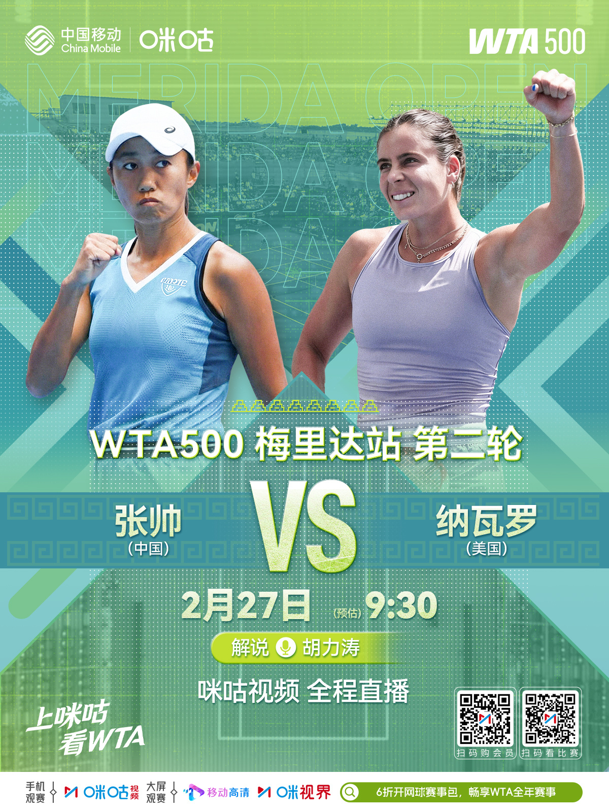 WTA500梅里达站👑 女单第2️⃣轮🇨🇳#张帅vs纳瓦罗#🇺🇸🎾 2月27日9:30 咪咕视频直播🔗 网页链接#看WTA上咪咕#