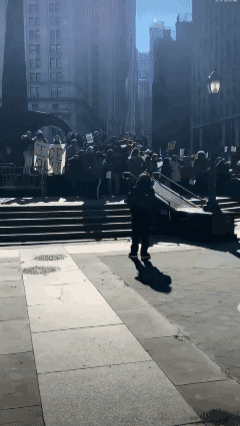 美国某广场,本地人聚在这一头大战ICE的娘亲,中国大妈聚在另一头淡定地跳广场舞,