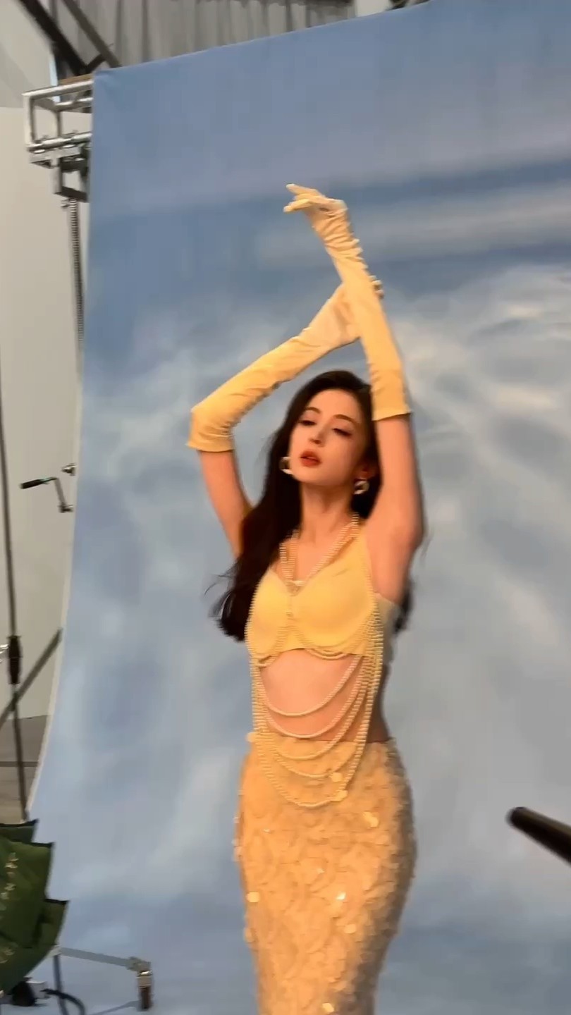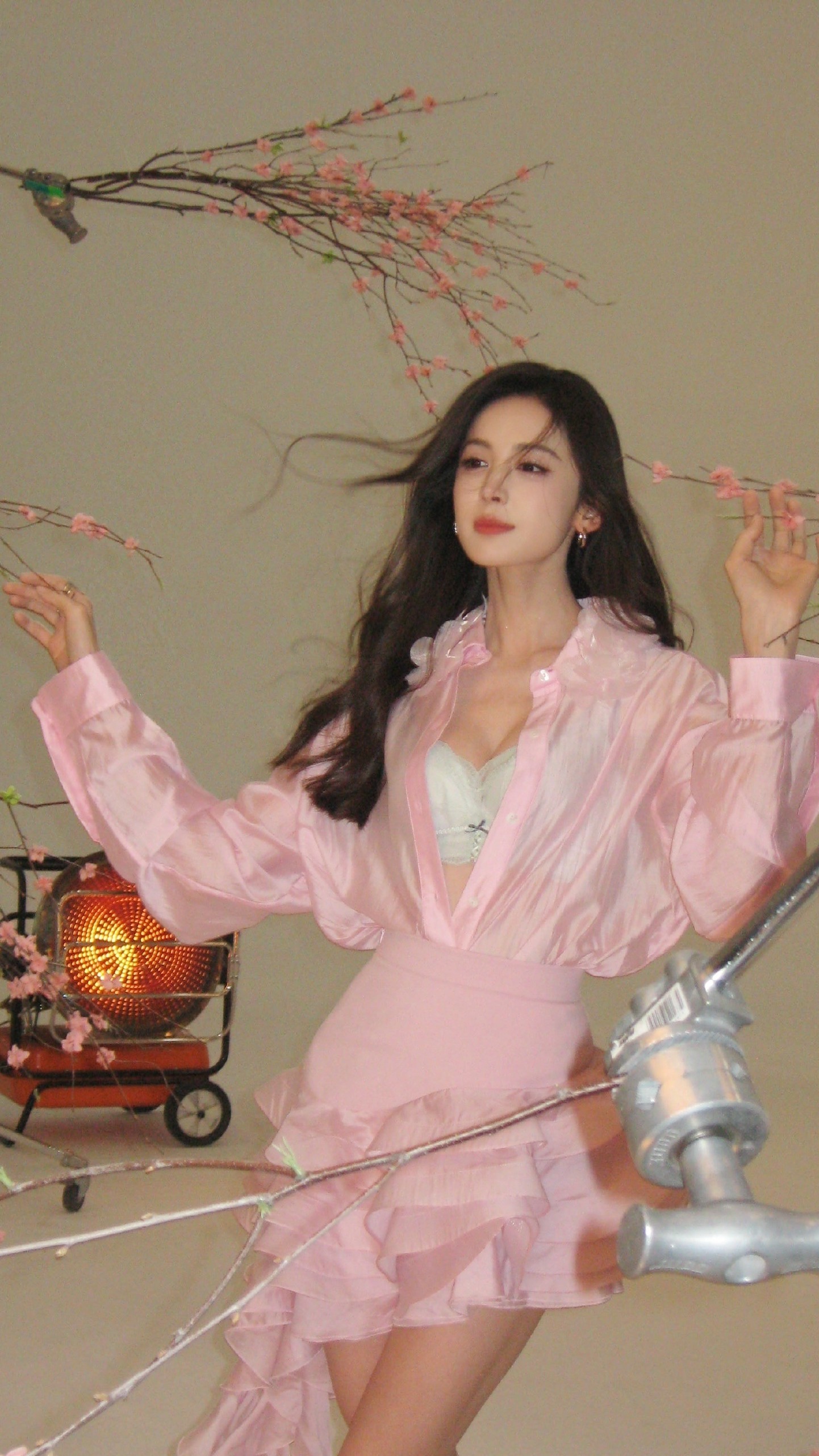 娜扎代言拍摄花絮,今日份粉红美人。娜扎