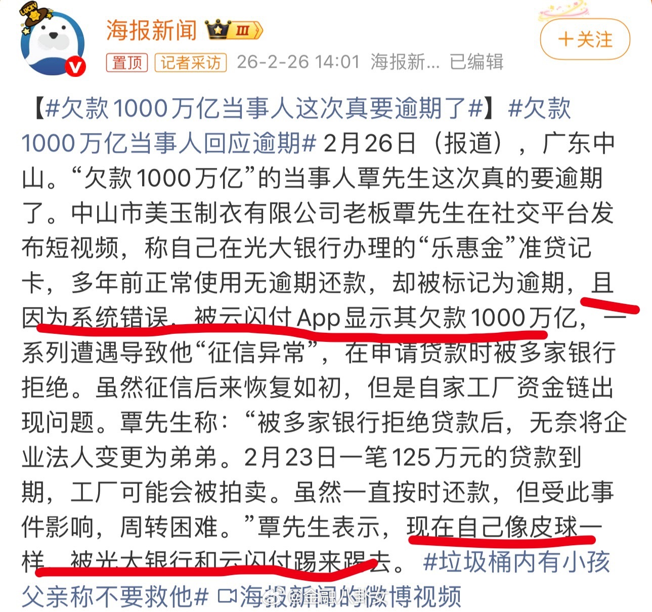 因为银行系统出错,当事人一下欠了两千年地区 GDP,时至目前还没解决。如果是存款有1000万亿,好奇多久可以更改过来欠款1000万亿当事人这次真要逾期了