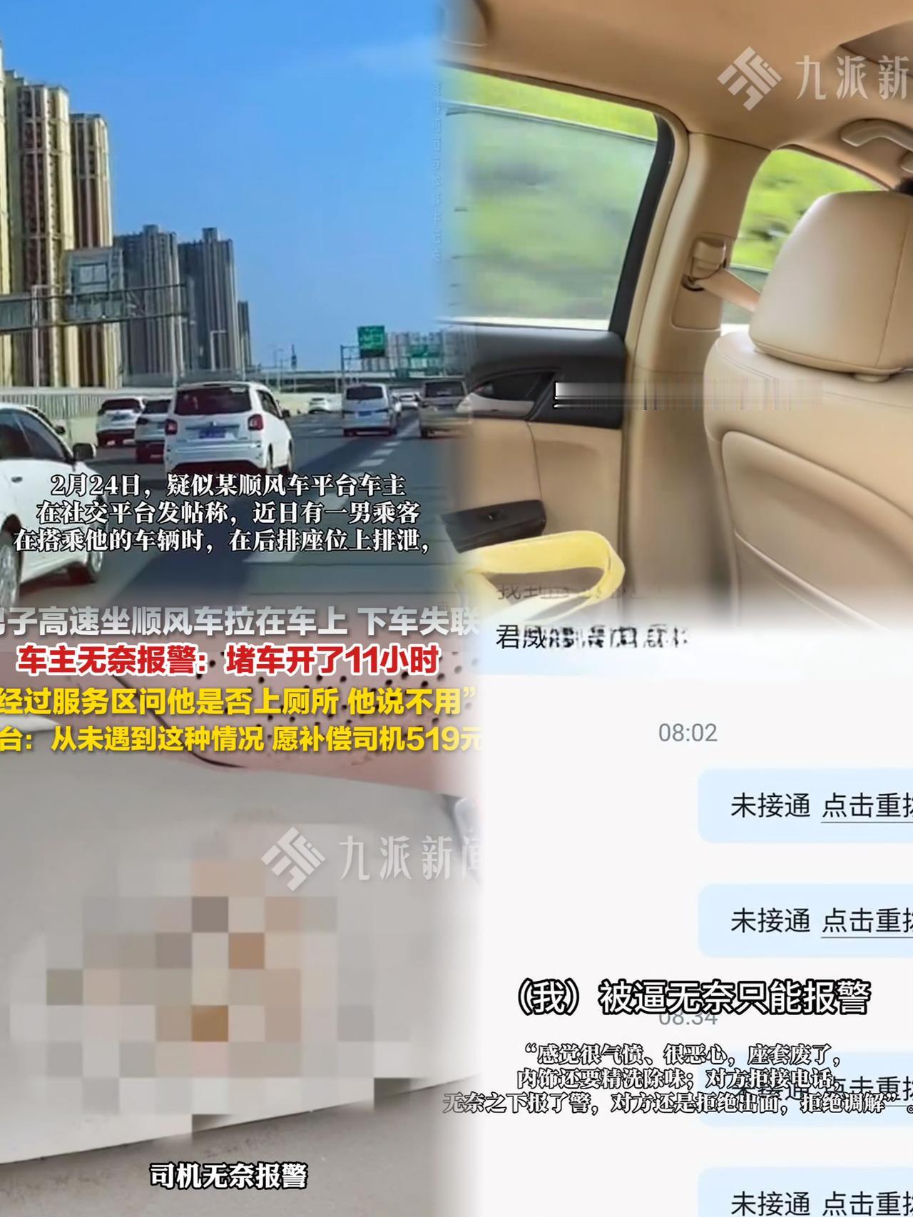 男子从徐州开11个小时把一40岁男乘客送到苏州后,他又开到上海,当他打开车后门,一股臭味飘出来,发现后座有排泄物,他才恍然大悟,乘客拉裤子里了,然后渗到坐垫上了,竟还偷拿纸巾情理了。 开11小时顺风车只赚200多,却被乘客弄脏整车,这事真的太窝火!谁都懂人有三急,但失控不是逃避责任的理由。 司机好心提醒上厕所,乘客明明难受却隐瞒,事后偷偷清理、扔纸巾,下车直接失联,连一句道歉都没有。 平台一开始只给50元优惠券,根本抵不上坐垫和精洗的费用,好在最终全额补偿并封禁乘客账号,才算给车主一个公道。 成年人的体面,从来都藏在担当里,意外不可怕,可怕的是出了事就躲,把麻烦全丢给别人。 换作是你,遇到这种事会怎么处理?