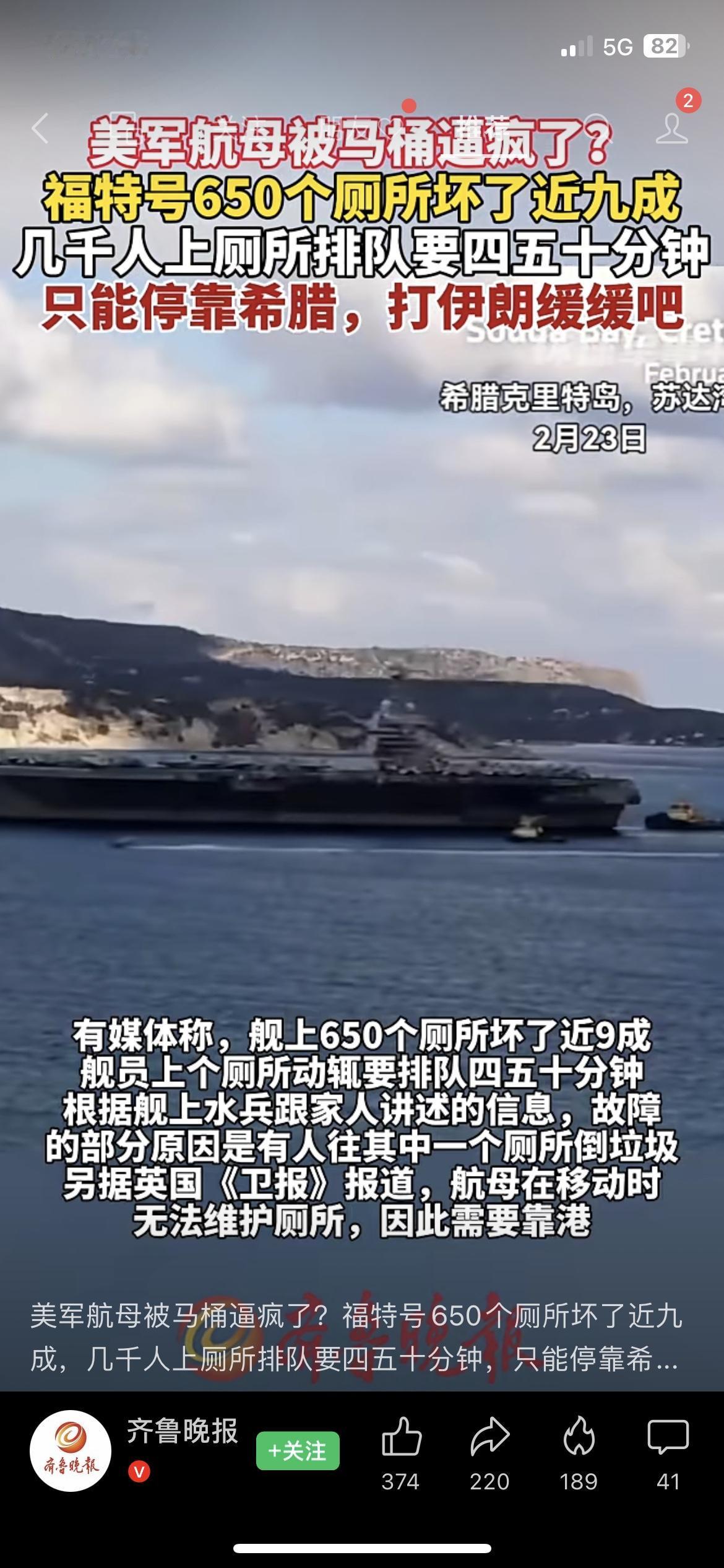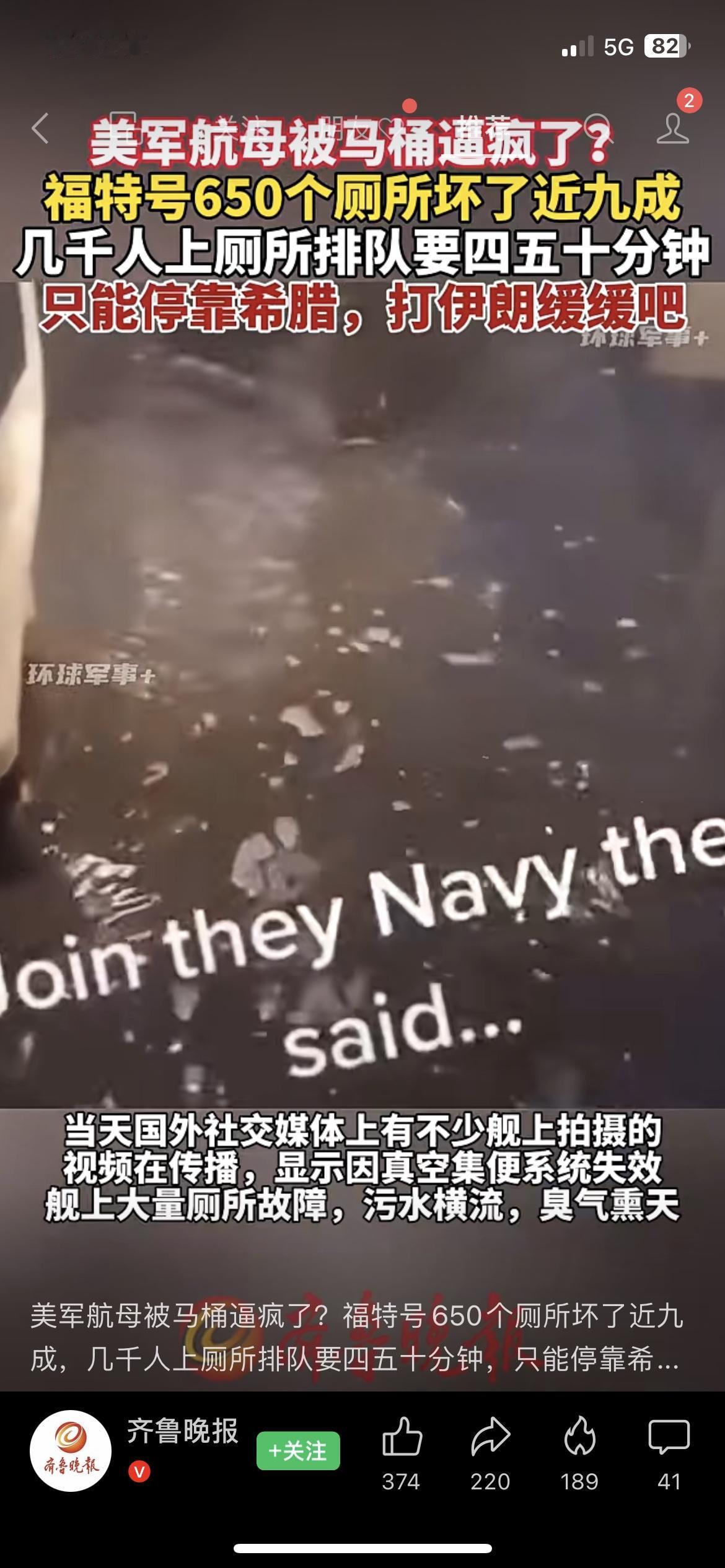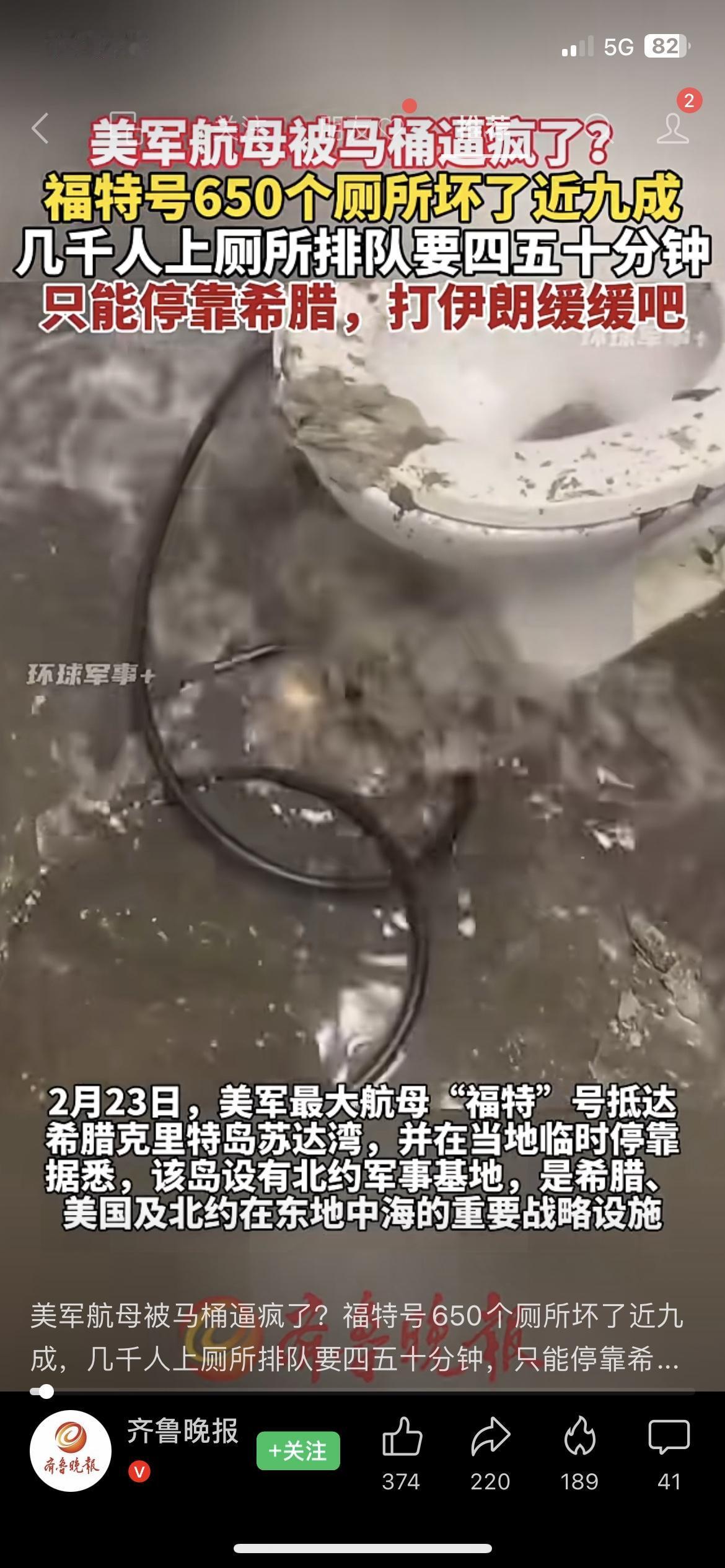 刷到个离谱新闻,美军“福特”号航母居然被马桶逼疯了! 据报道,这艘美军最大航母上的650个厕所坏了近九成,几千名舰员上厕所要排队四五十分钟,甚至出现污水横流、臭气熏天的情况,只能停靠希腊克里特岛维修。 更搞笑的是,故障原因之一居然是有人往厕所里倒垃圾,导致真空集便系统失效,而且航母在移动时还没法维修,只能靠港处理。 网友调侃:“打伊朗先缓一缓吧,先把厕所修好再说。” 这事儿也太魔幻了,你们觉得这是装备问题还是管理问题? 美军福特号 航母厕所故障 国际趣闻