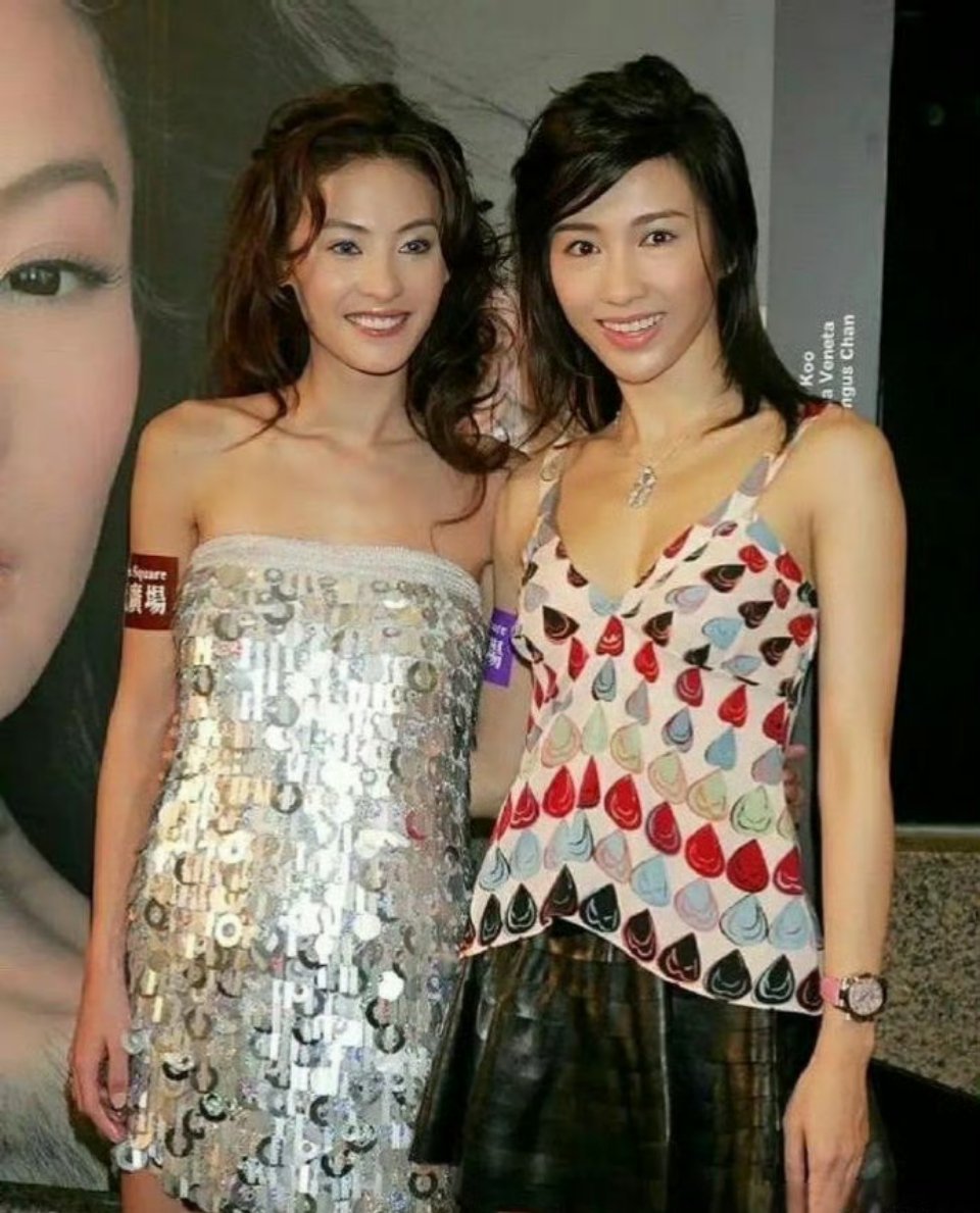 黎姿和张柏芝当年站在一起合照,那时候还没有美颜滤镜