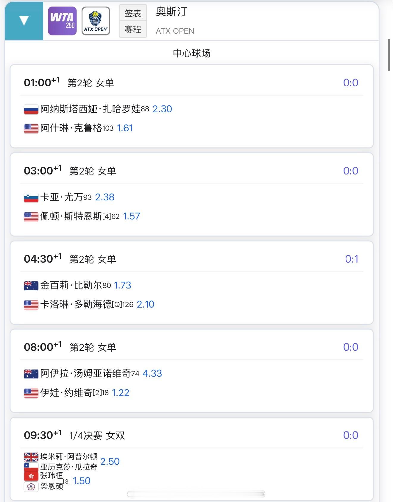 【今日比赛赛程+直播赛程】+8:00张帅vs卡辛采娃+10:00袁悦vs克鲁格