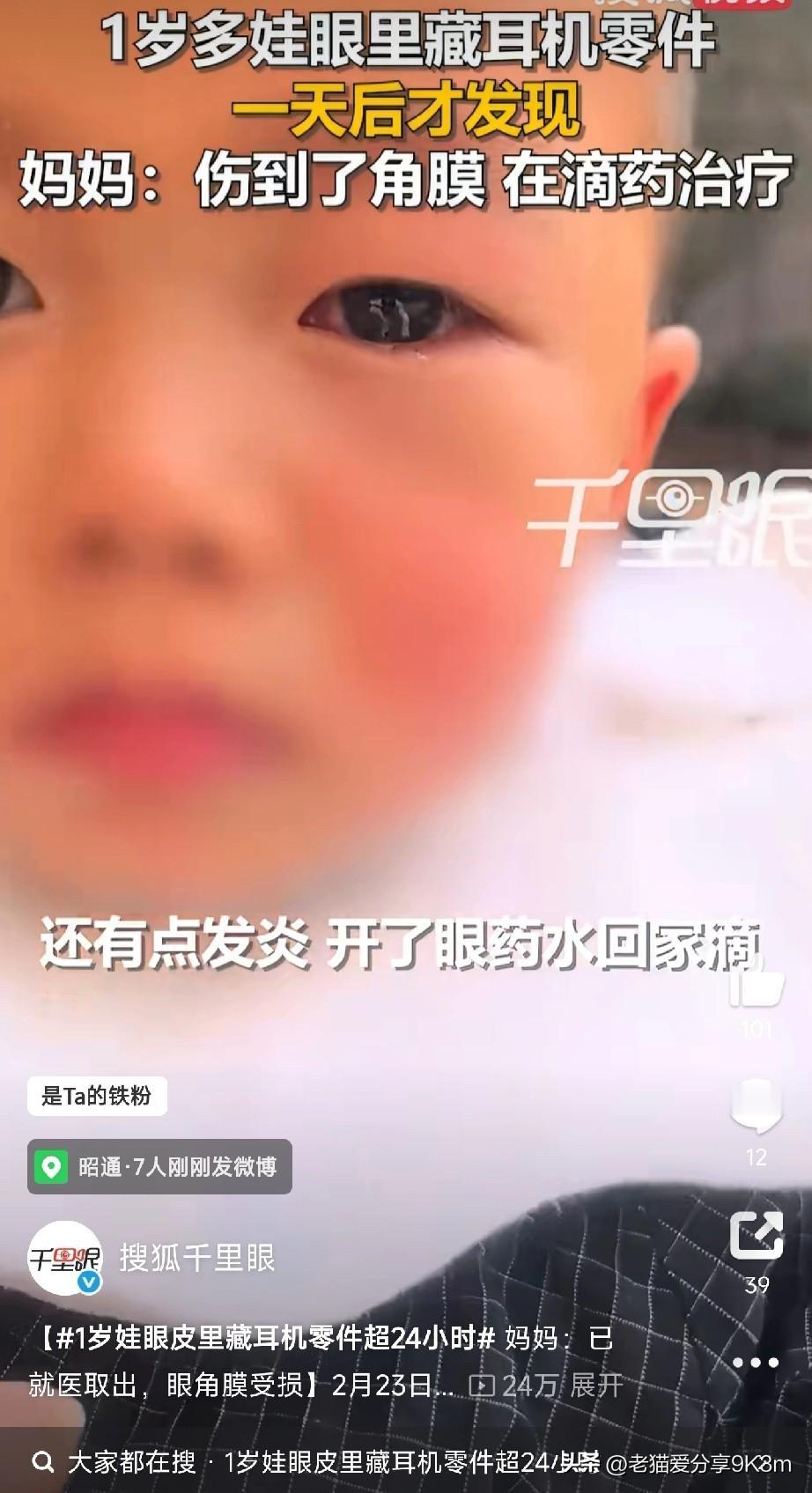 今天看到一个新闻,真的把我的心揪起来了! 云南昭通一个才1岁8个月的宝宝,眼皮里居然藏了耳机零件超24小时! 妈妈说,当天发现孩子眼睛有点红,一开始检查没发现异物,结果过了一天再仔细看,才发现下眼睑里藏着耳机听筒的薄片! 赶紧送医院,取出来之后,医生说眼角膜受损了,好在现在滴眼药水已经好多了…… 真的不敢想,那么小的零件,在宝宝眼睛里待了整整一天!得多难受啊!孩子小,好奇心强,啥都往嘴里塞、往眼里塞、往耳朵里塞!当家长的真的要操碎心! 想起我们邻居家孩子小时候,也发生过类似的事!有次吞了阳台上的钉子,全家人吓得往医院跑,折腾了好几天才取出来! 孩子年纪小,根本不懂啥危险,看见啥新鲜玩意儿都想“研究研究”,稍不留神就容易出事! 再次提醒所有家长: 1️⃣ 家里的小物件一定要收好! 耳机零件、纽扣电池、小玩具零件、图钉……这些统统收起来,别让孩子能轻易拿到! 2️⃣ 多检查孩子的身体! 特别是眼睛、耳朵、嘴巴,如果发现孩子哭闹、揉眼睛、抓耳朵,千万别大意,仔细检查一下! 3️⃣ 安全教育不能少! 等孩子大一点,要告诉他哪些东西危险,不能放进嘴里、眼里、鼻子里。 4️⃣ 万一发现异物,别乱处理! 赶紧送医院!别自己瞎折腾,以免造成更大的伤害! 带娃就是升级打怪,处处是“陷阱”!咱们当家长的,一定要细心再细心,警惕再警惕! 孩子的安全,真的容不得半点马虎! (文章素材来自搜狐千里眼,侵删)