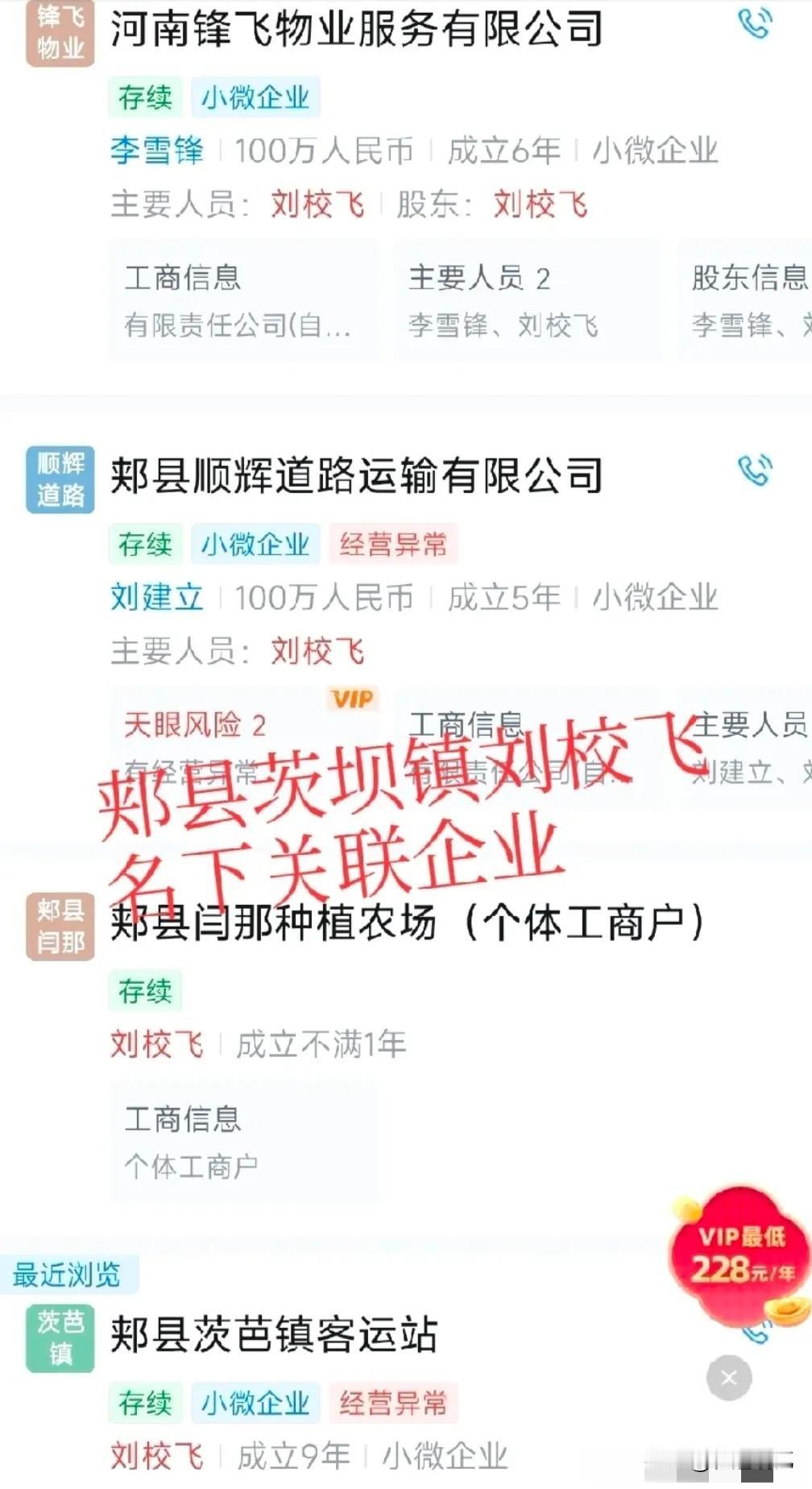 通报中说郏县刘某飞是个体工商户,但是有好事的网友查了一下,名下竟关联了4家企业,难怪在当地这么豪横。 不但参与当地乡镇的客运站的经营,还有一个运输公司,物业公司,和今年刚刚成立的农场,就凭这财力在当地乡镇上来说,也可以算是个人物了。 想必在乡镇上能够经营几家公司,确实不简单呀!