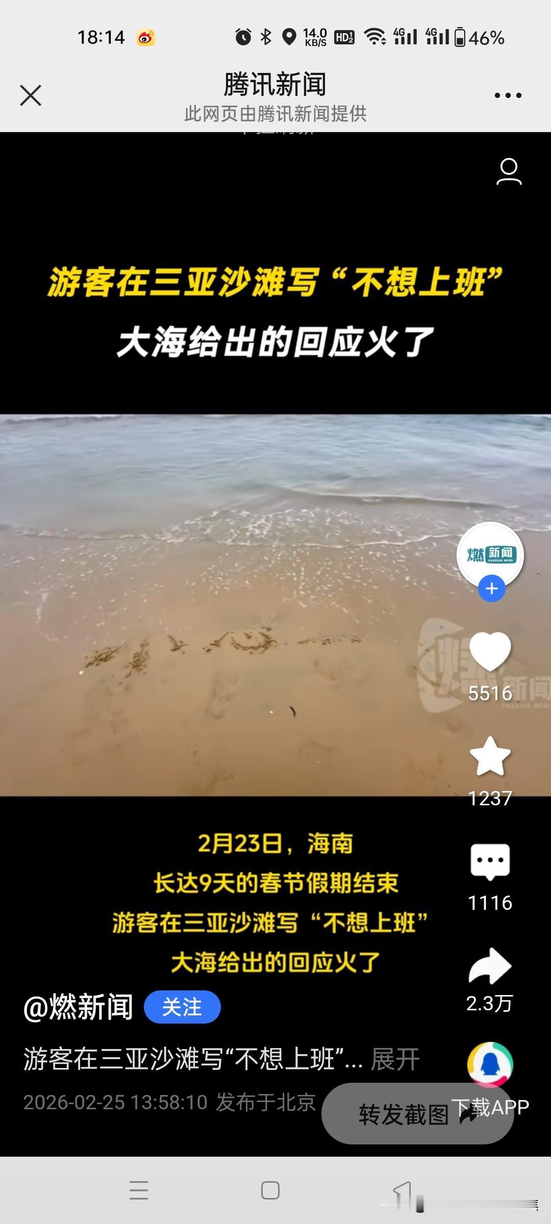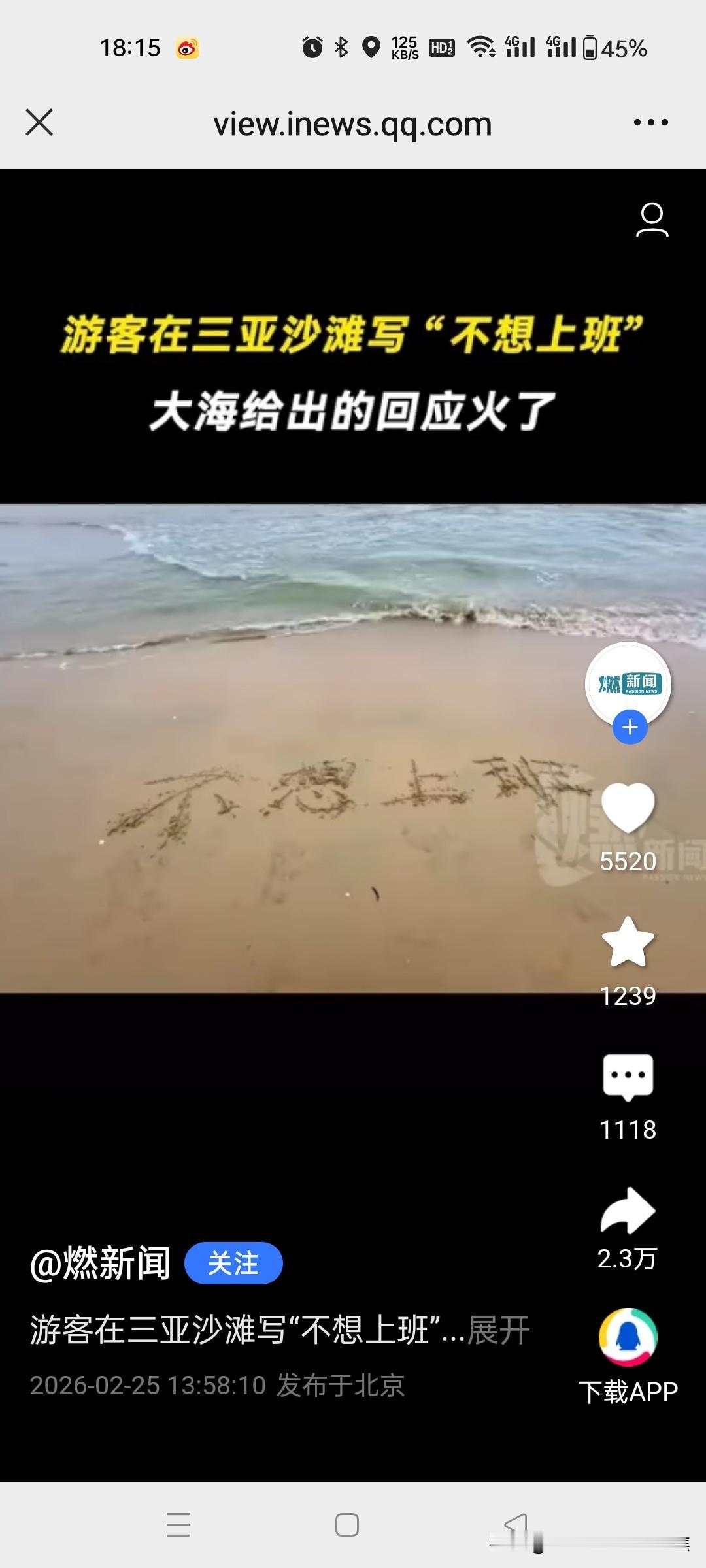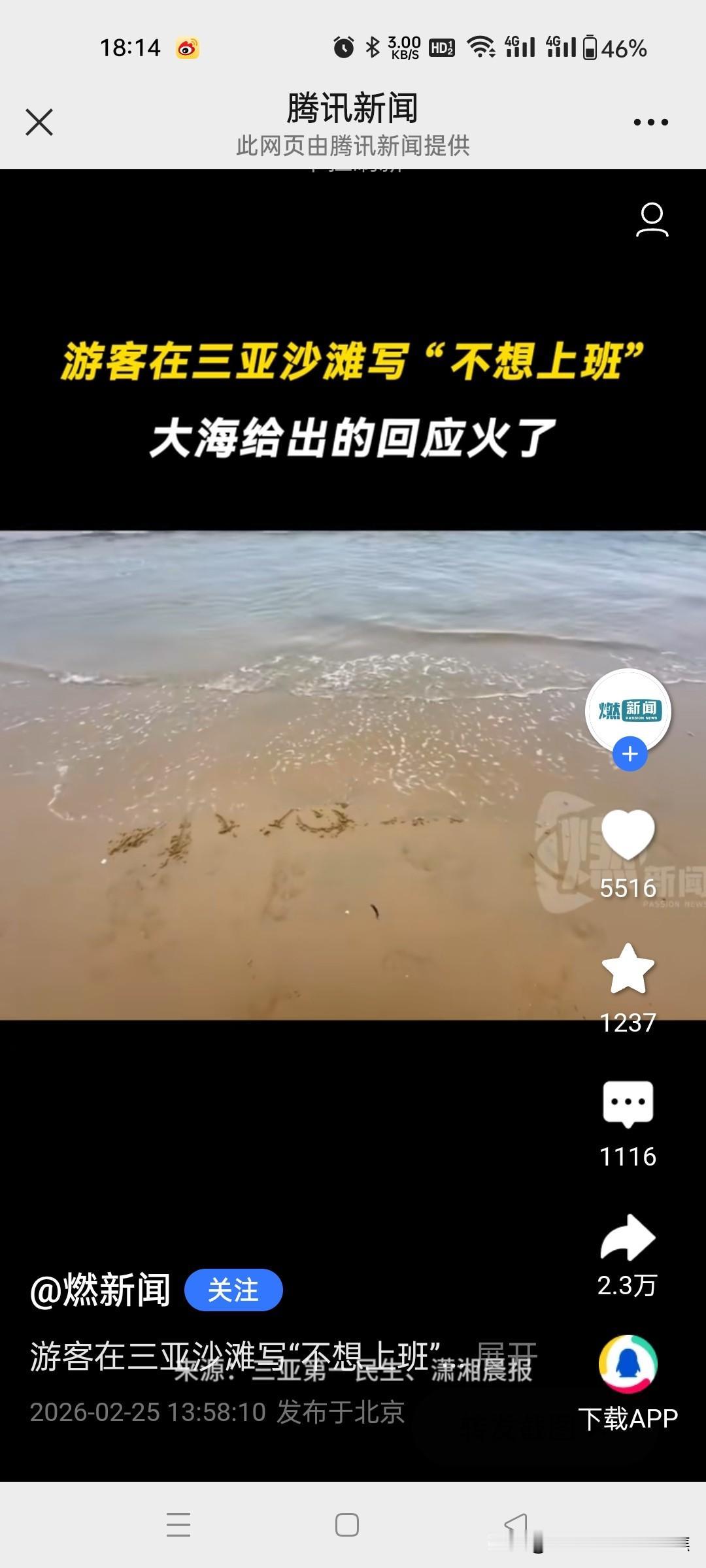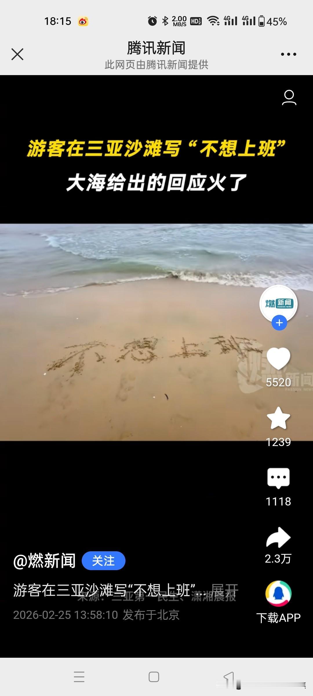 游客在三亚沙滩写“不想上班”,大海给出的回应火了!网友的回复太通透了。 在三亚沙滩上,有游客写下“不想上班”,结果一个浪打来,字变成了“小心一点”,这大海的回应瞬间火了。网友们的回复那叫一个通透,有人说大海是在提醒,不上班生活可能有风险,得小心着点;也有人调侃这是大海在劝游客别做梦了。其实想想,谁不想逃离上班的压力去享受悠闲,但现实往往不允许。这沙滩上的文字转变就像生活的小玩笑,提醒我们在向往自由的同时,也要面对生活的责任。不过偶尔去海边写写字,让大海回应一下,也算是一种别样的解压。