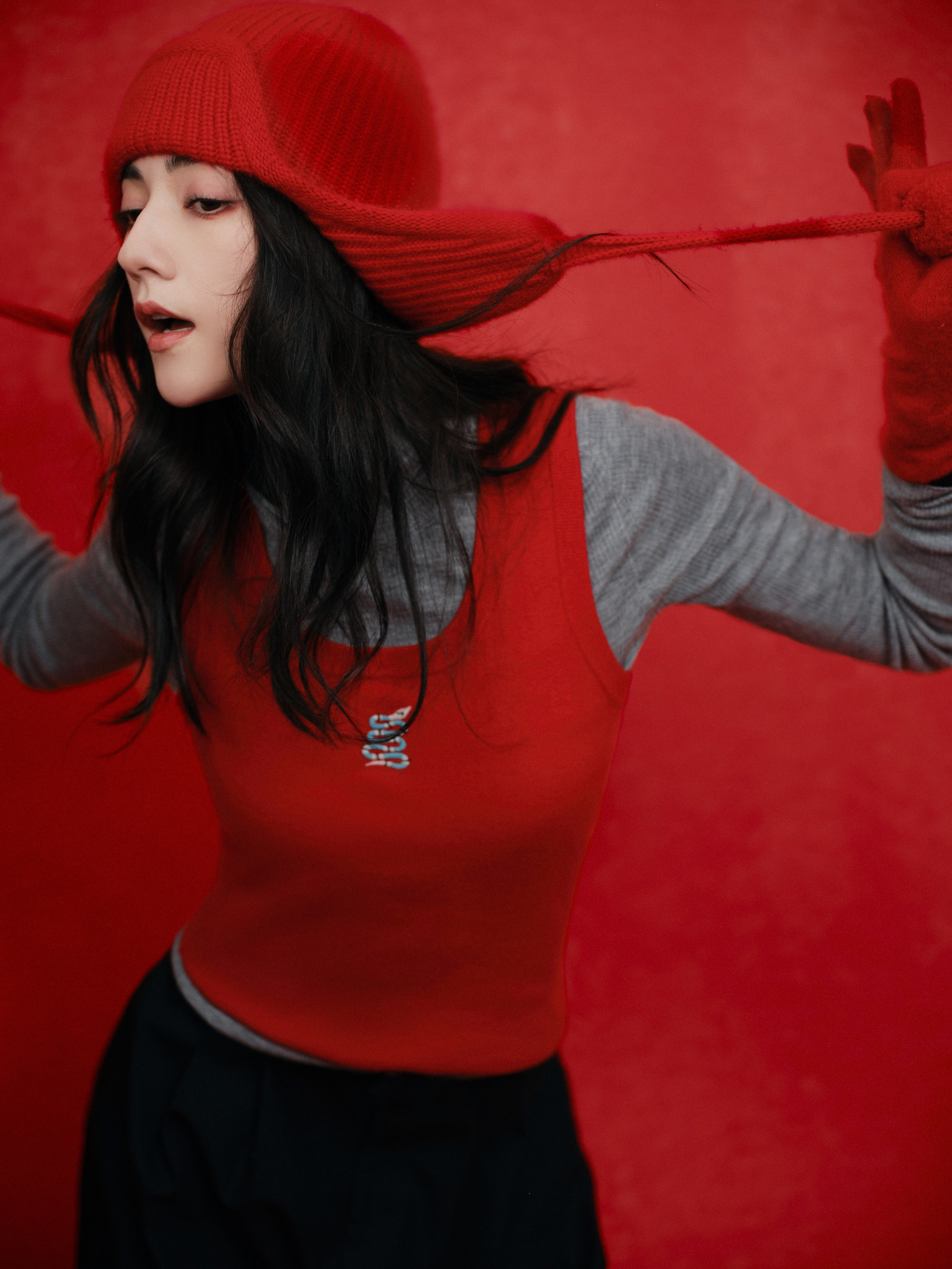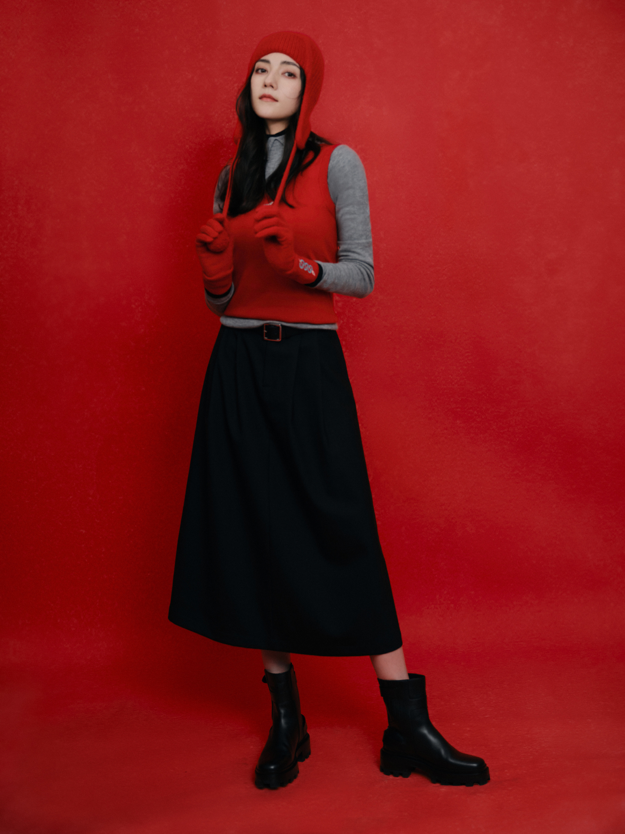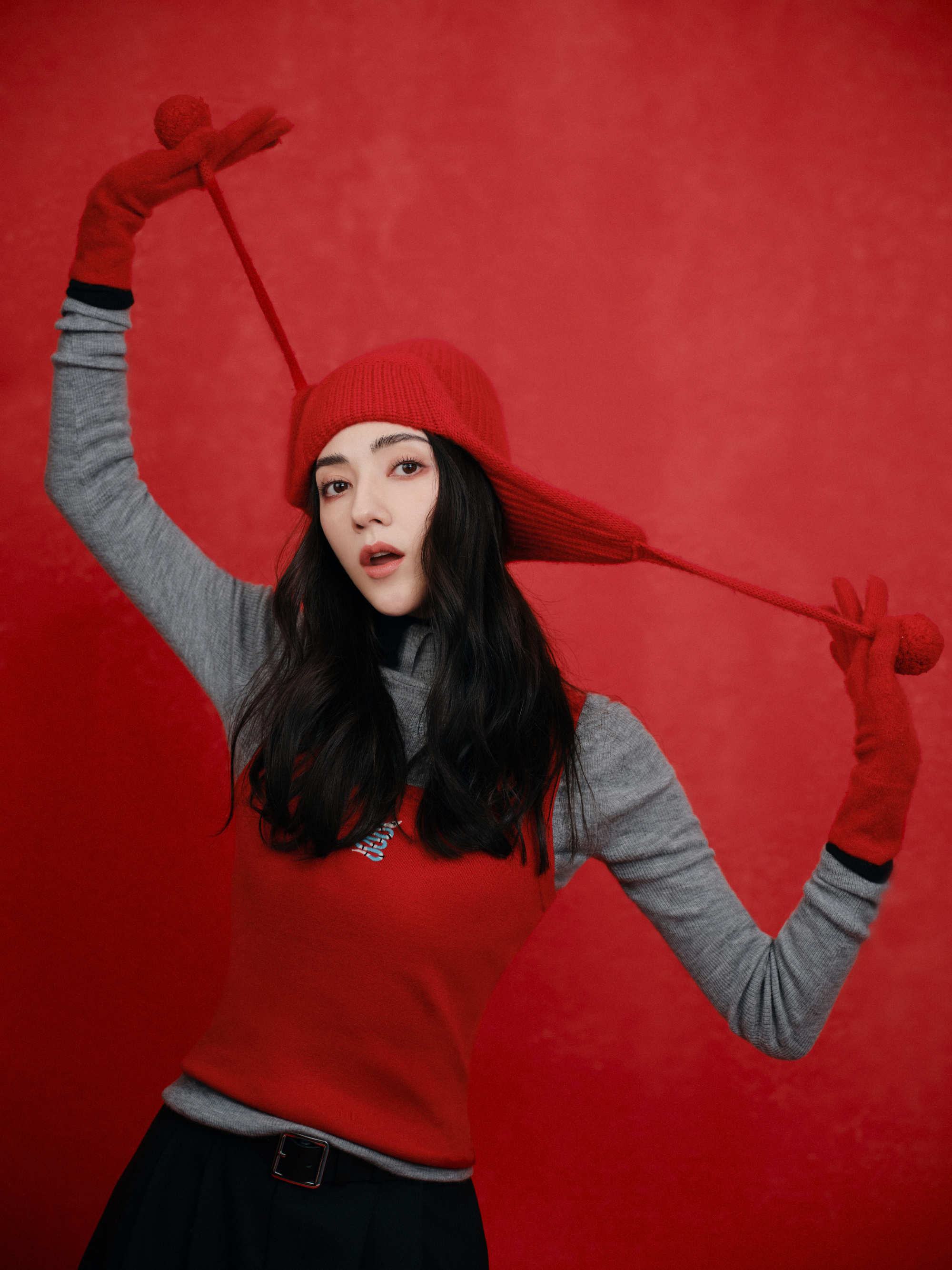 娜然红衣黑裙穿搭,灵感循新,蓄满冬日元气。娜然