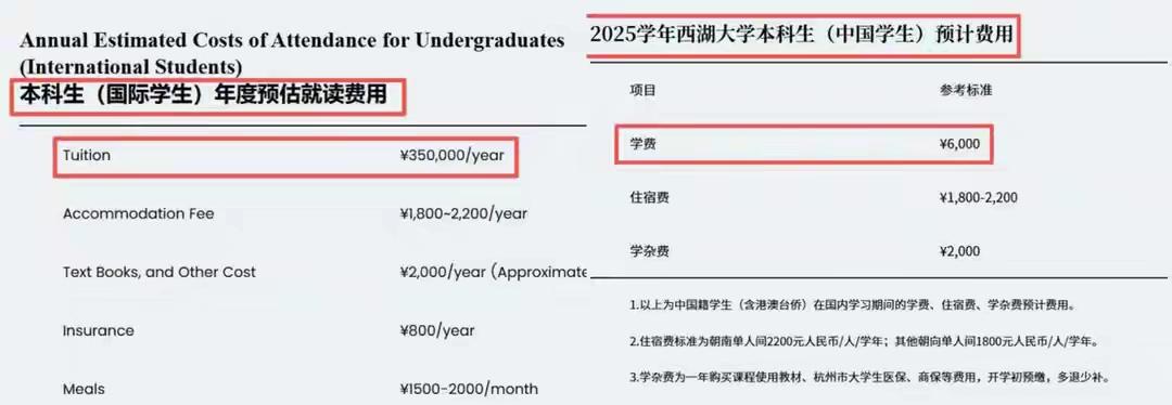 不搞超国民待遇!西湖大学这波,打醒多少高校 西湖大学这次,真的太提气了! 同样的教室、同样的老师、同样的实验室: 中国学生一年学费6000元,外籍学生35万元。 差距近60倍,却让全网拍手叫好。 很多人第一反应:双标? 看完原因,你只会点赞。 西湖大学是施一公创办的顶尖研究型大学, 没有985、211头衔,实力却不输名校。 这次收费,直接把教育公平讲透了: 国内学生学费受政府管控,走公益路线, 6000块,普通家庭完全负担得起。 学校还配导师制、顶尖实验室, 真正让寒门学子也能读一流大学。 外籍学生不享受国家财政补贴, 按市场定价,35万是国际通行标准, 不降低门槛、不发补贴、不搞特殊待遇。 想来读书,可以,凭实力、按市场价, 没有谁高人一等。 国内学生千军万马过独木桥, 外籍学生却免学费、高补贴、住好宿舍, 用纳税人的钱去凑所谓“国际化排名”, 老百姓早就看不惯了。 西湖大学用行动说清一件事: 中国的大学,首先要服务中国学生。 不崇洋、不媚外、不搞虚的排名, 把最好的资源,留给自己人。 35万不是贵,是公平; 6000元不是便宜,是初心。 这才是中国高校该有的骨气和自信! 你支持给外籍学生取消超国民待遇吗? 西湖大学这波,你觉得做得对不对? 评论区说出你的态度,赞同的直接点赞! 西湖大学 教育公平 中国高校 本国学生优先