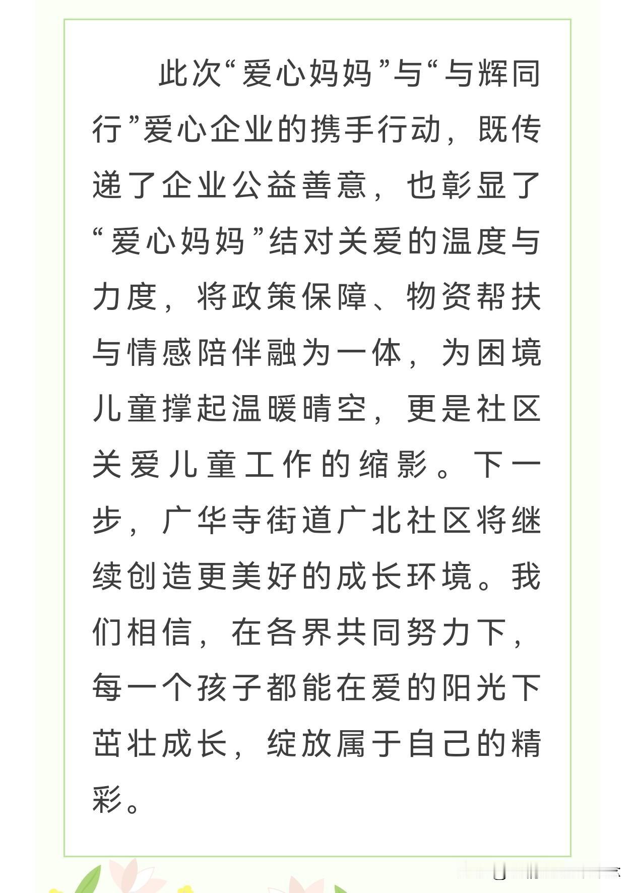 没想到“与辉同行”公益捐赠的辐射面这么广,捐赠的人群如此精准! 这次他们来到了湖北潜江市广华寺街道广北社区,他们和社区的“爱心妈妈”一起,给社区困难儿童送去了礼物。 这些小朋友是在明德康复中心接受专业训练的,这个康复中心主要是帮助一些身体或智力发育比较慢、需要特殊照顾的孩子。 有的孩子说话、走路比同龄人晚一点,有的需要专门的康复训练,才能慢慢跟上成长的节奏。 这些孩子和他们的家庭,要比普通家庭付出更多的辛苦和耐心。这次为小朋友们送去的每一份礼物,是真的走到了最基层、找到了最需要帮助、也最容易被忽略的群体。 这也是董宇辉和“与辉同行”一直以来的样子——心里永远装着普通人,眼里总能看见别人的不容易,低调又踏实!