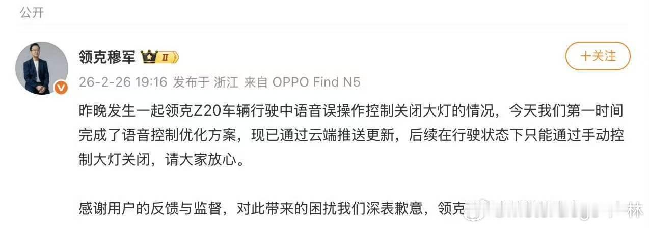不然可以对这些影响安全性的功能增加一步容错识别“是否确实关闭大灯,确定请说确定”这样就不会乱来了。领克汽车领克领克