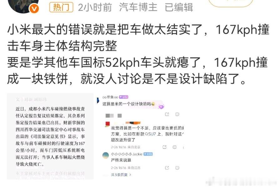 “专业分析”SU7车主家属和小米就赔偿未达成一致