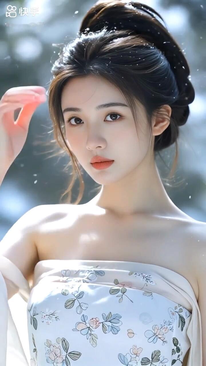 温柔的黑发少女,沉思的瞬间,静谧而美丽。